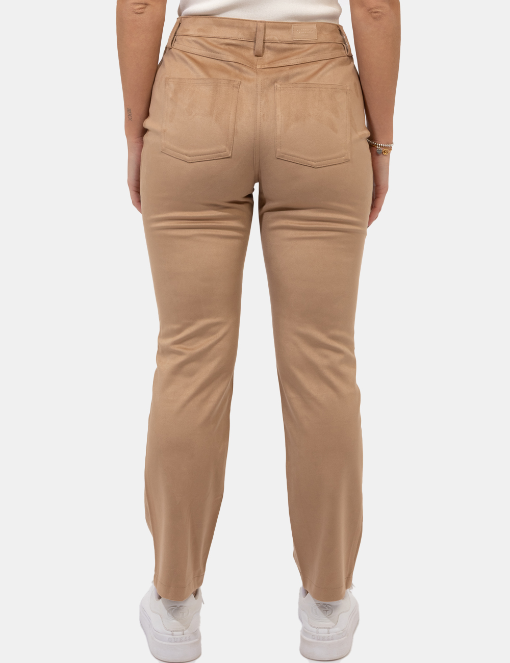 Pantaloni simil scamosciato in total marrone nocciola.Presenti tasche sagomate sul fronte e tasche a toppa sul retro. La vestibilità è morbida e pratica grazie a bottone ad asola più zip. I pantaloni sono adatti per occasioni casual e facilmente combinabili. Indossali per essere sempre a tuo agio.
