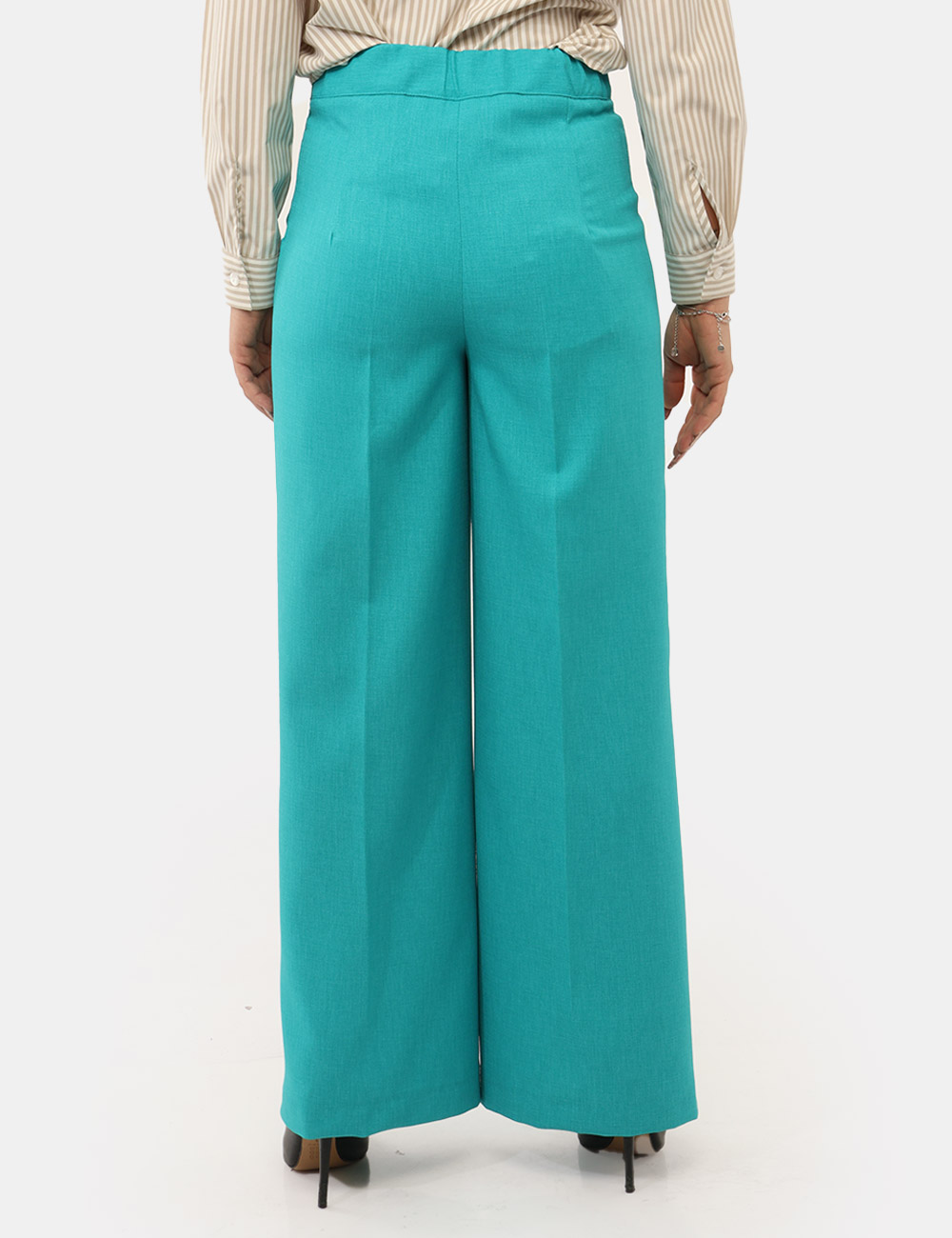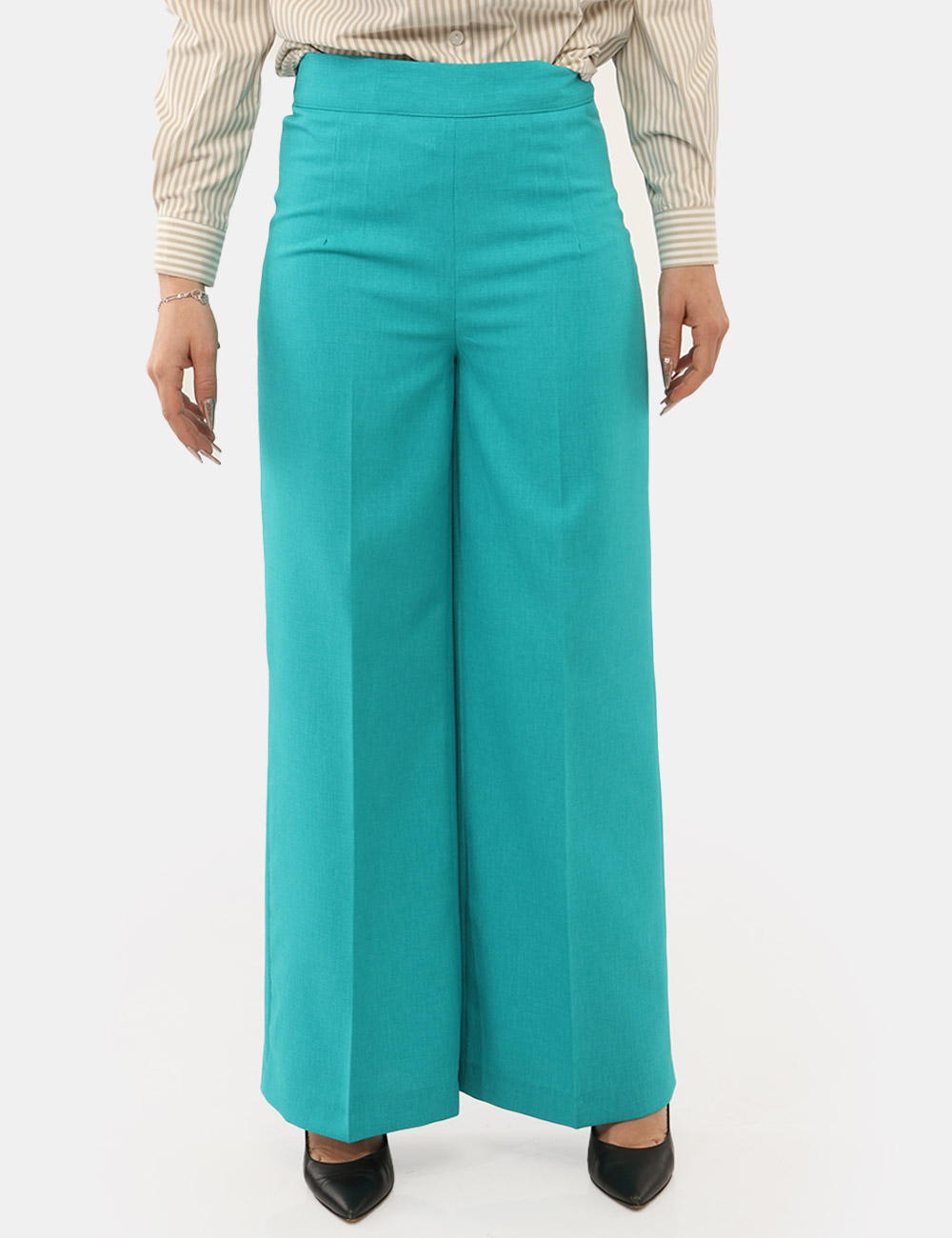 Per un look coordinato e raffinato, puoi abbinarli a un blazer nello stesso tono e a un top neutro; per uno stile più casual e disinvolto, indossali con una t-shirt bianca e sneakers. Il colore azzurro dona freschezza e luminosità, rendendo questi pantaloni un capo essenziale per la bella stagione.