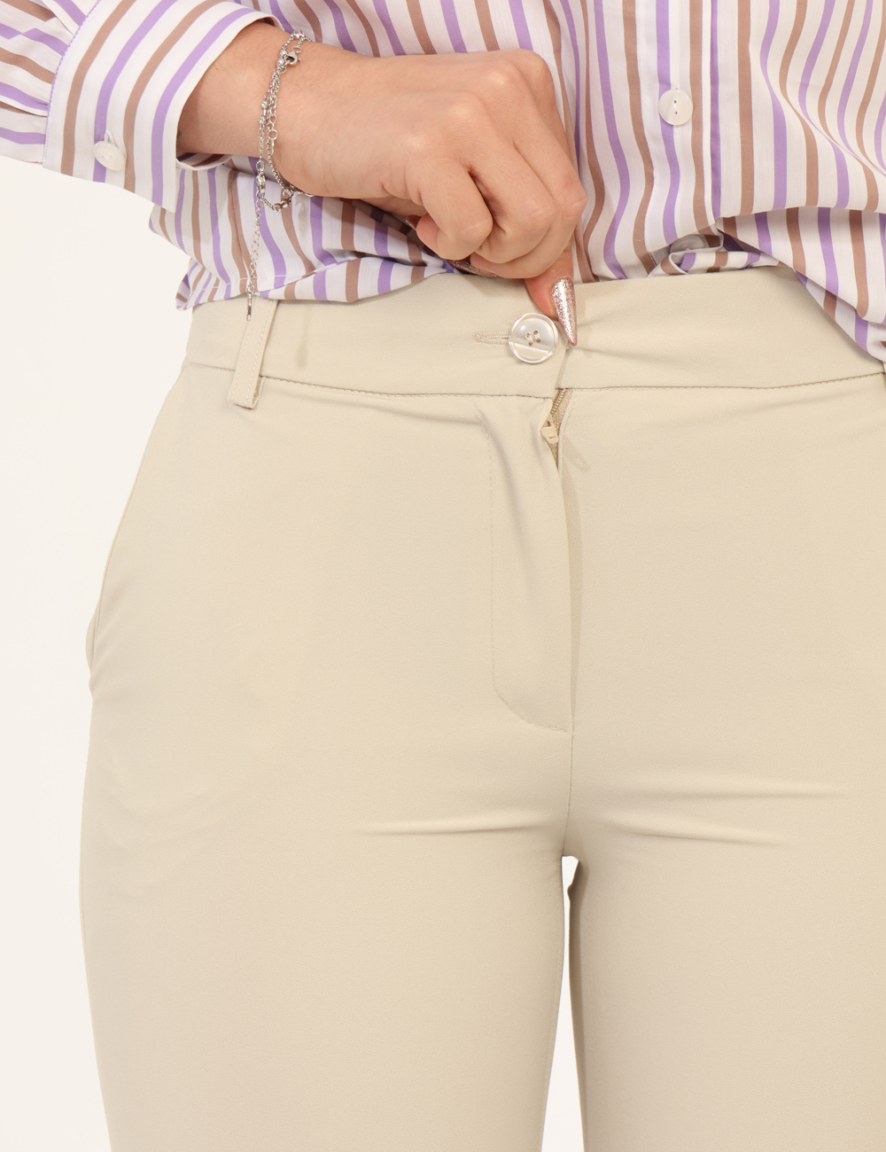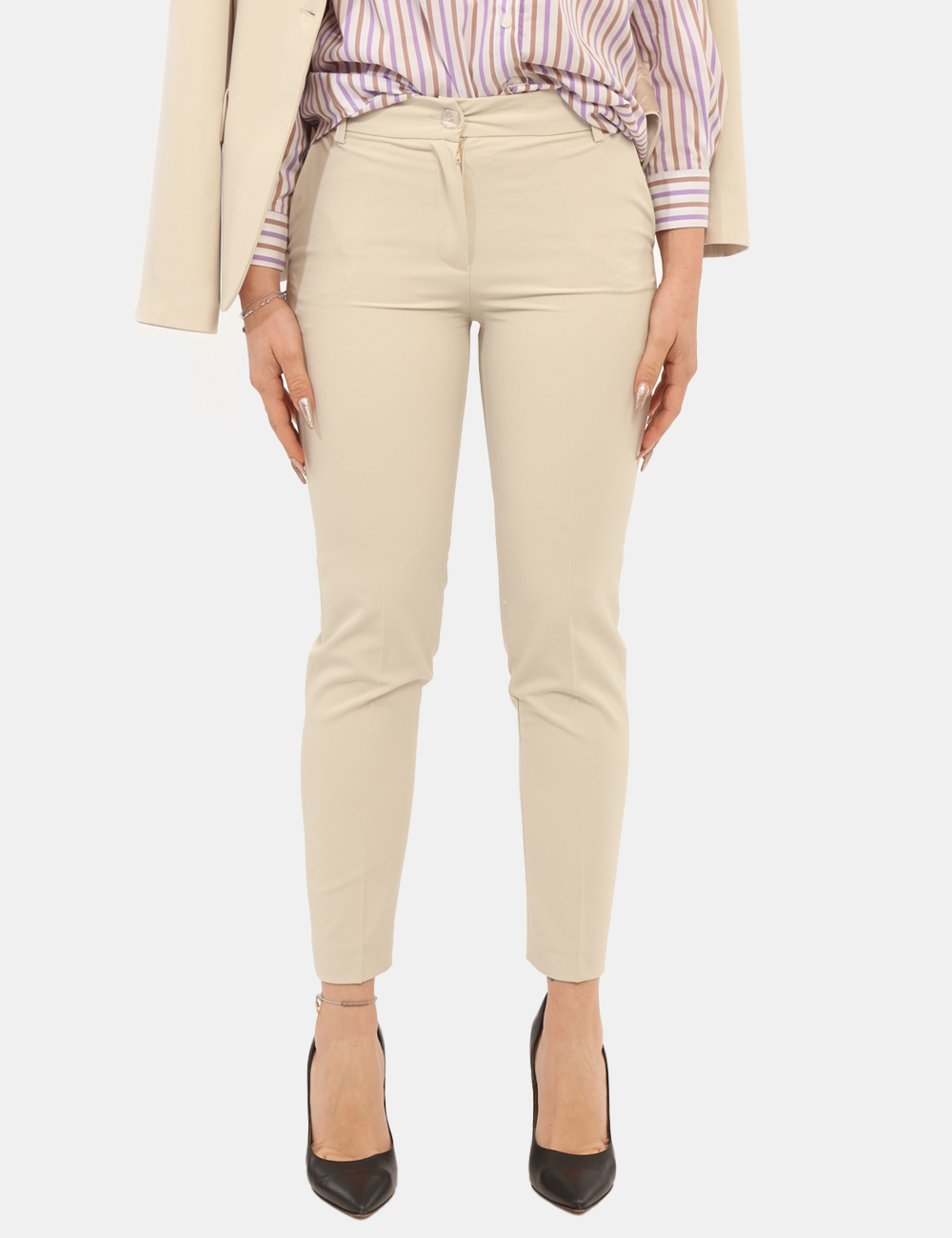 I Pantaloni MATERICA Beige sono un capo elegante e versatile pensato per accompagnarti con stile durante la stagione più luminosa dell’anno. Questi pantaloni da donna adatti alla stagione primavera estate uniscono linee pulite e comfort, offrendo un equilibrio perfetto tra raffinatezza e praticità per i tuoi outfit quotidiani. Realizzati in un tessuto leggero composto da 92% poliestere e 8% elastane, assicurano una vestibilità regolare che valorizza la silhouette mantenendo libertà di movimento. Il design è curato nei dettagli: si tratta di pantaloni con in tonalità beige chiaro, tasche a taglio, bottone più zip, elementi che contribuiscono a creare un look moderno, essenziale e facile da abbinare. Il colore beige chiaro rende questi pantaloni particolarmente versatili e ideali per costruire outfit eleganti ma anche più rilassati. I Pantaloni MATERICA Beige sono perfetti da indossare in ufficio per un look professionale e ordinato, ma anche nel tempo libero quando desideri uno stile raffinato e confortevole. Per un outfit armonioso puoi abbinarli al blazer coordinato della stessa linea e a un top leggero, creando un completo elegante perfetto per la primavera e l’estate. In alternativa, indossali con una camicia morbida o una t-shirt per un look casual chic adatto alle giornate più dinamiche. La modella è alta 165 cm e indossa la taglia 40; la vestibilità del capo è regolare. Su SecondaStrada.com trovi solo prodotti originali e accuratamente selezionati. Codice articolo: PD01SP26 TP333 NIZZA OB.