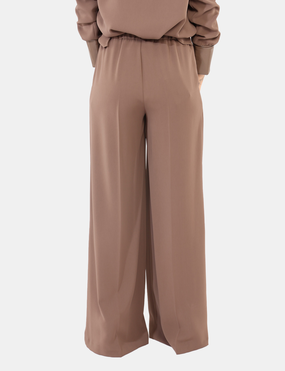 Pantaloni eleganti in total marrone nocciola con tasche a taglio trasversale. La vestibilità è morbida e pratica grazie a bottone più zip e regolabile grazie a coulisse in girovita con cordino abbinato. I pantaloni sono adatti per occasioni casual/raffinate e ideali con il blazer in tinta per dar vita ad un tailleur perfetto. Aggiungilo al tuo guardaroba e saprai sempre cosa indossare.