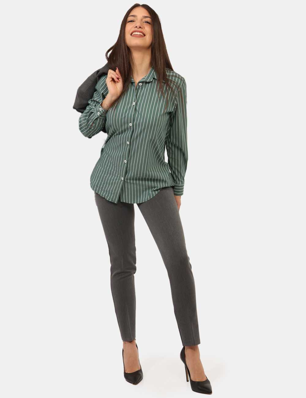 La modella è alta 165 cm e indossa la taglia 40. La vestibilità del capo è regolare