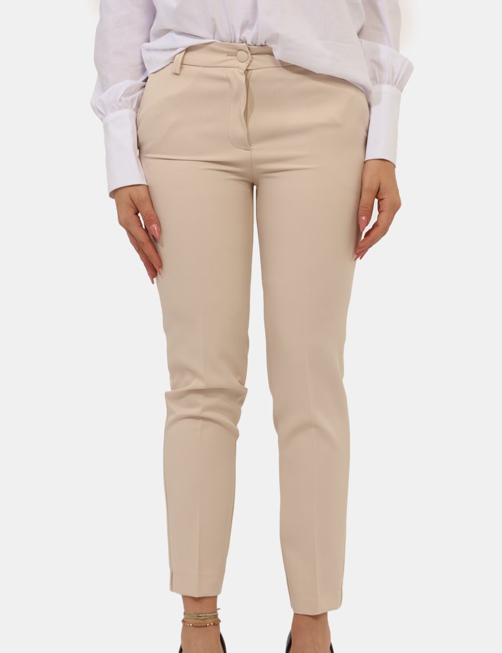 Pantaloni larghi, eleganti, in total bianco panna con tasche a taglio trasversale. La vestibilità è morbida e pratica grazie a bottone più zip. I pantaloni sono adatti per occasioni casual/raffinate e facilmente combinabili. Dona un tocco di colore ai tuoi outfit.