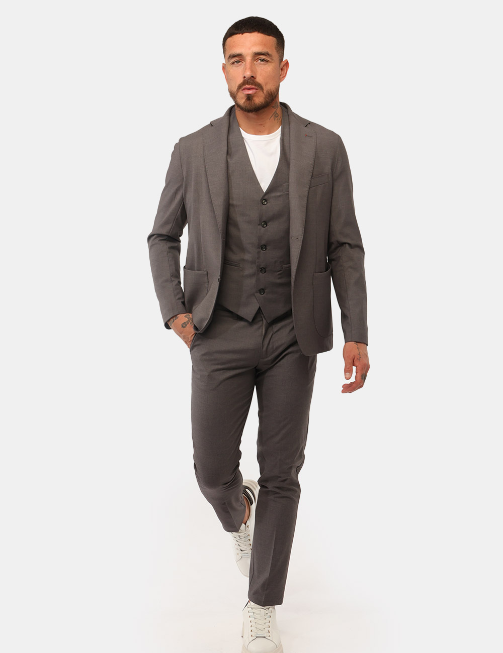 I Pantaloni PRJ22. Grigio da uomo rappresentano un capo elegante e versatile, ideale per creare outfit curati e contemporanei durante la bella stagione. Realizzati con una composizione di 70% poliestere, 28% viscosa e 2% elastane, questi pantaloni offrono il giusto equilibrio tra comfort, resistenza ed elasticità, garantendo una vestibilità piacevole e libertà di movimento durante tutta la giornata. Il design essenziale è caratterizzato da pantaloni con tasche, bottone e zip, dettagli classici che aggiungono praticità e contribuiscono a definire uno stile raffinato ma moderno.