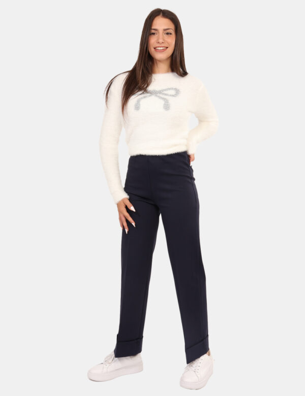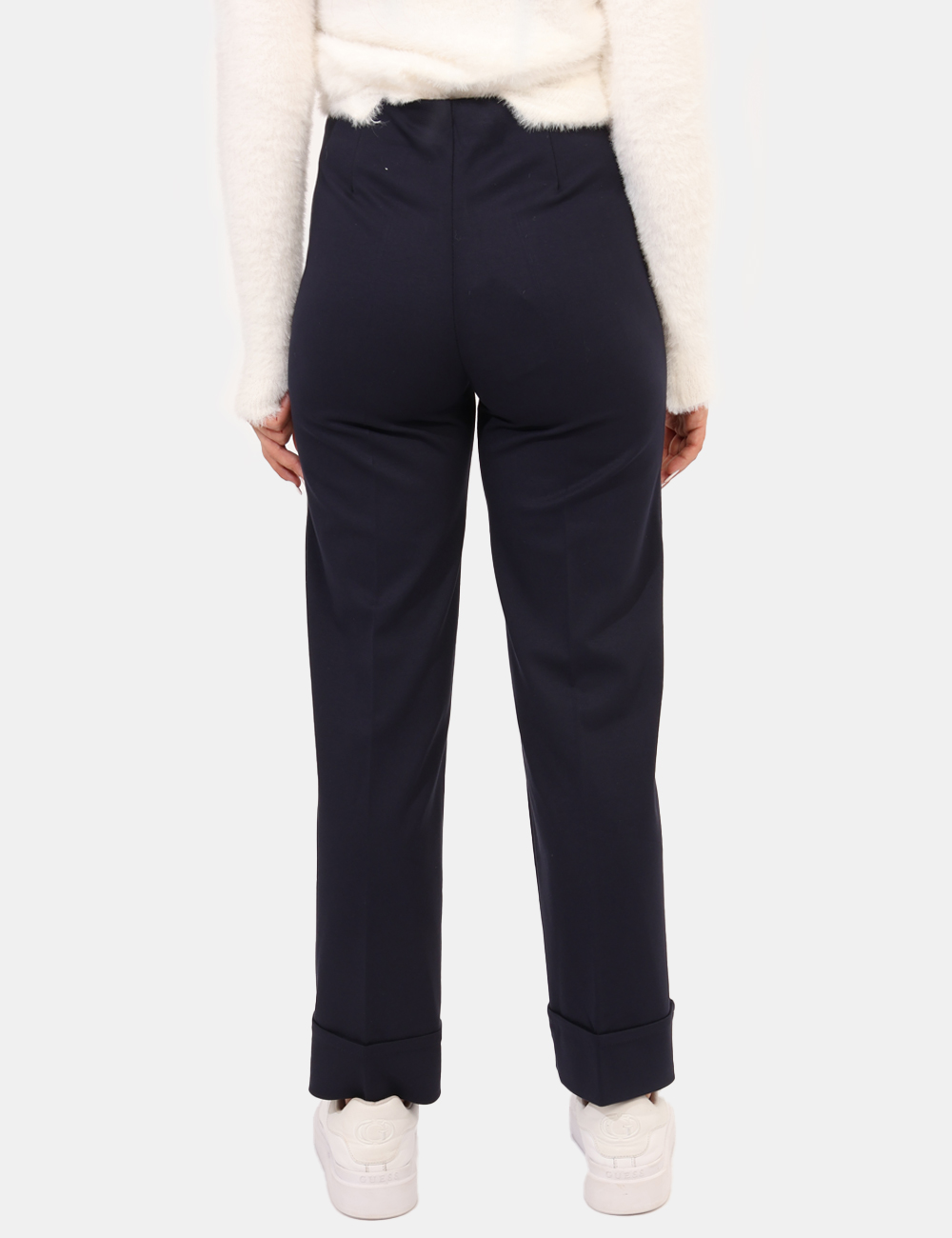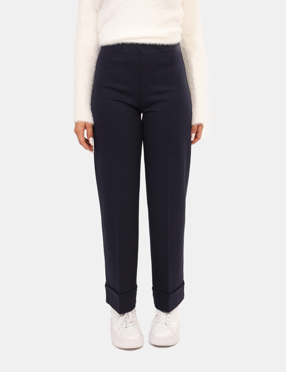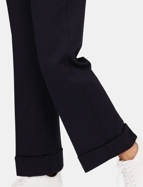 Pantaloni classici, in total blu con risvoltino. La vestibilità è morbida e regolabile grazie ad elastico in girovita. Il capo è adatto per occasioni casual e facilmente combinabile. Aggiungili al tuo guardaroba e saprai sempre cosa indossare