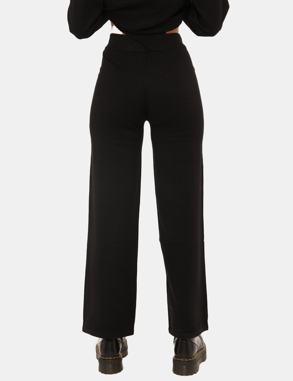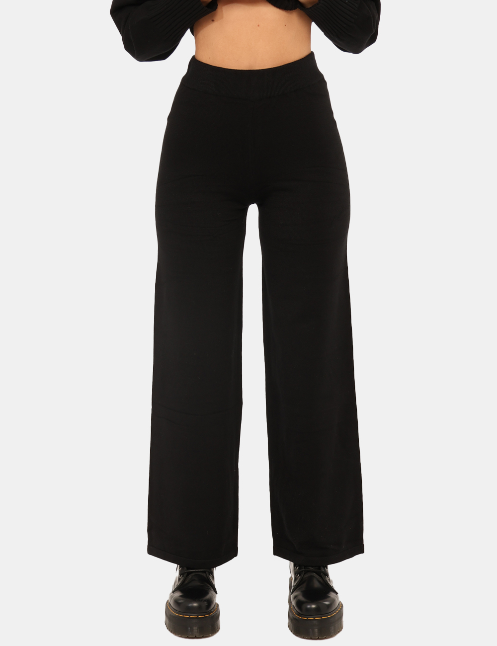 Pantaloni in maglina, larghi, in total nero. La vestibilità è morbida e regolabile grazie ad elastico in girovita. I pantaloni sono adatti per occasioni casual e facilmente combinabili, ideali con il maglione coordinato. Indossali per spiccare con stile.