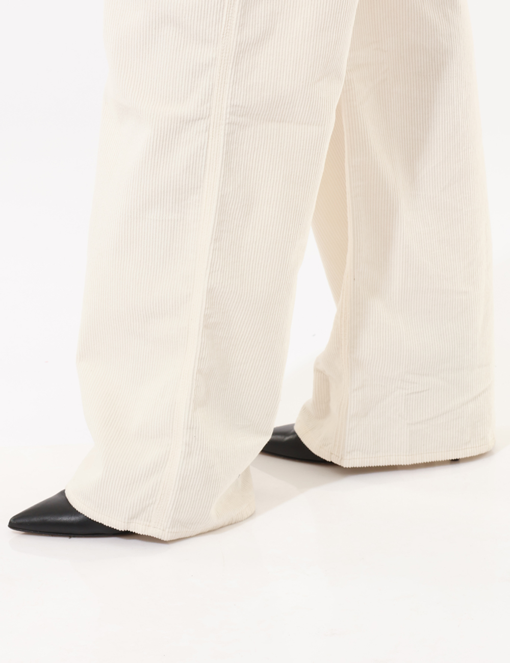 Pantaloni in simil velluto, total bianco, con tasche a taglio trasversale sul fronte e tasche a toppa sul retro. La vestibilità è morbida e pratica grazie a bottone più zip. I pantaloni sono adatti per occasioni casual e facilmente combinabili. Aggiungili al tuo guardaroba e saprai sempre cosa indossare.