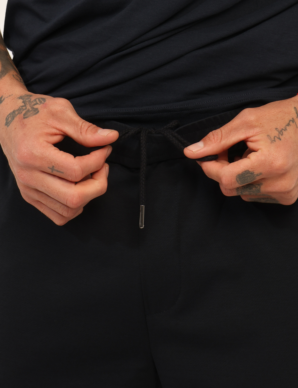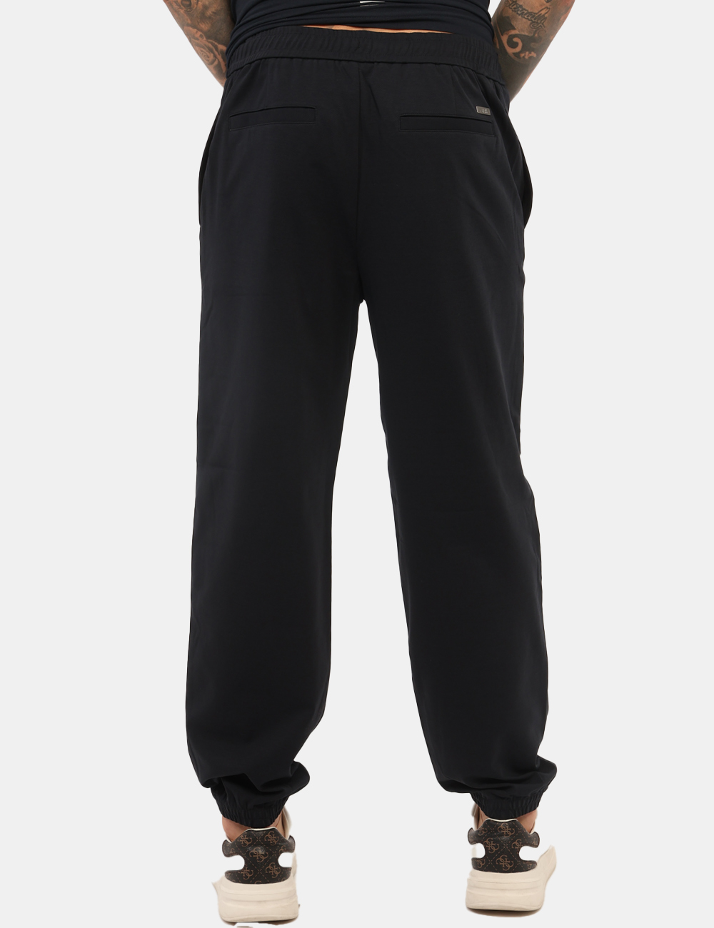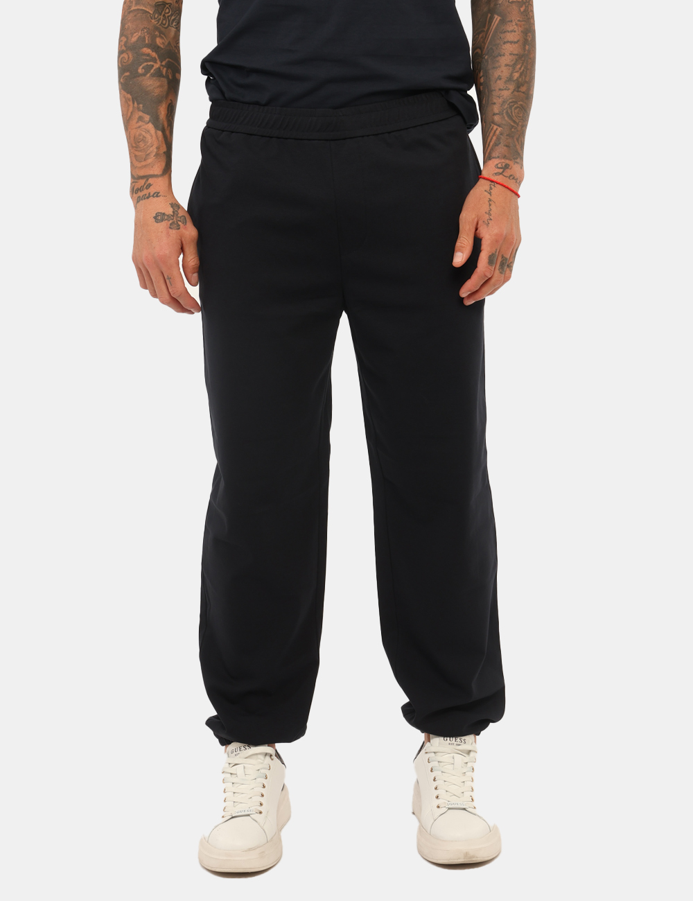 Il pantalone è caratterizzato dal polsino elastico, un dettaglio pratico che migliora la vestibilità e dona al capo un look sportivo e contemporaneo. La vestibilità è regolare, pensata per offrire libertà di movimento e una linea naturale sul corpo. Il modello è alto 187 cm e indossa la taglia L, un riferimento utile per scegliere la misura più adatta.