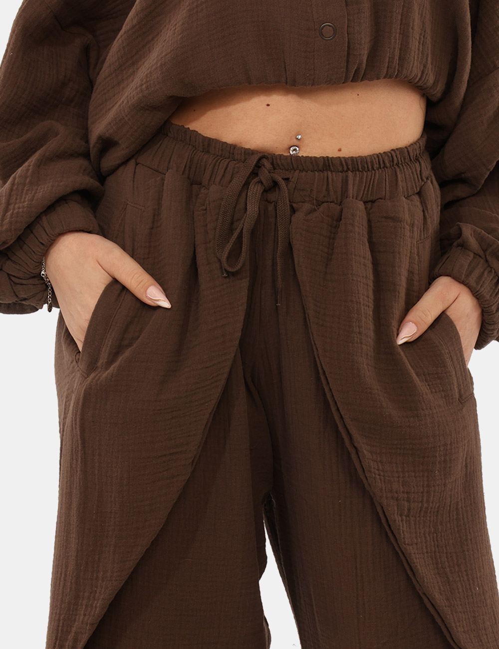 I Pantaloni VIA DELLE ROSE Marroni sono il capo ideale per chi desidera unire comfort, stile e versatilità durante la stagione più calda. Questi pantaloni da donna primavera estate sono pensati per accompagnarti nelle giornate primaverili ed estive con un look rilassato ma sempre curato. Il colore marrone, caldo e naturale, rende il capo facile da abbinare e perfetto per creare outfit equilibrati e contemporanei, adatti a diverse occasioni. Realizzati in 100% cotone, garantiscono leggerezza e traspirabilità, offrendo una sensazione piacevole sulla pelle anche nelle giornate più calde. Il design è caratterizzato da una linea morbida e moderna che valorizza la silhouette senza rinunciare al comfort: si tratta infatti di Pantaloni con tessuto morbido e leggero, gamba larga e coulisse, dettagli che conferiscono al capo uno stile rilassato ma ricercato. La gamba larga crea movimento e fluidità, mentre la coulisse in vita permette di regolare la vestibilità rendendo il pantalone pratico e confortevole. I Pantaloni VIA DELLE ROSE Marroni sono perfetti da indossare nel tempo libero, durante una passeggiata in città, una giornata di shopping o un aperitivo estivo quando desideri un outfit comodo ma stiloso. Puoi abbinarli facilmente con sandali e top per un look fresco e femminile, oppure con una t-shirt e sneakers per uno stile più casual e dinamico. La modella è alta 165 cm e indossa la taglia S; la vestibilità del capo è regolare. Su SecondaStrada.com trovi solo prodotti originali e accuratamente selezionati. Codice articolo: VS25 17314 SB.