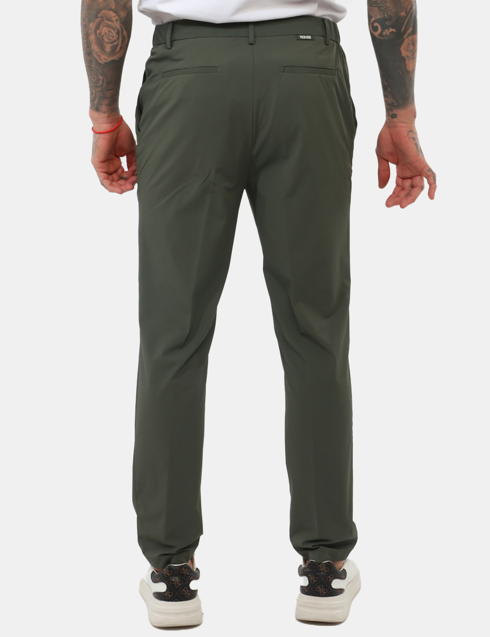 I Pantaloni YES ZEE Verde militare sono la scelta perfetta per chi desidera un look moderno, funzionale e sempre curato. Realizzati in un tessuto tecnico composto da 90% nylon e 10% elastano, offrono leggerezza, elasticità e comfort, adattandosi ai movimenti e garantendo una vestibilità pratica per tutta la giornata. Il design contemporaneo è valorizzato dalla gamba stretta, che slancia la figura, e dalla chiusura con bottoni e laccetti, dettaglio che unisce stile e funzionalità.