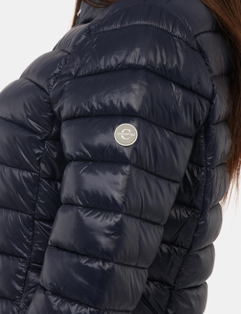 Piumino leggero in total blu navy lucido, con tasche a taglio. La vestibilità è morbida e pratica grazie a zip sul fronte. Il piumino è adatto per occasioni casual e facilmente combinabile. Il tuo prossimo articolo nei prodotti salvati.