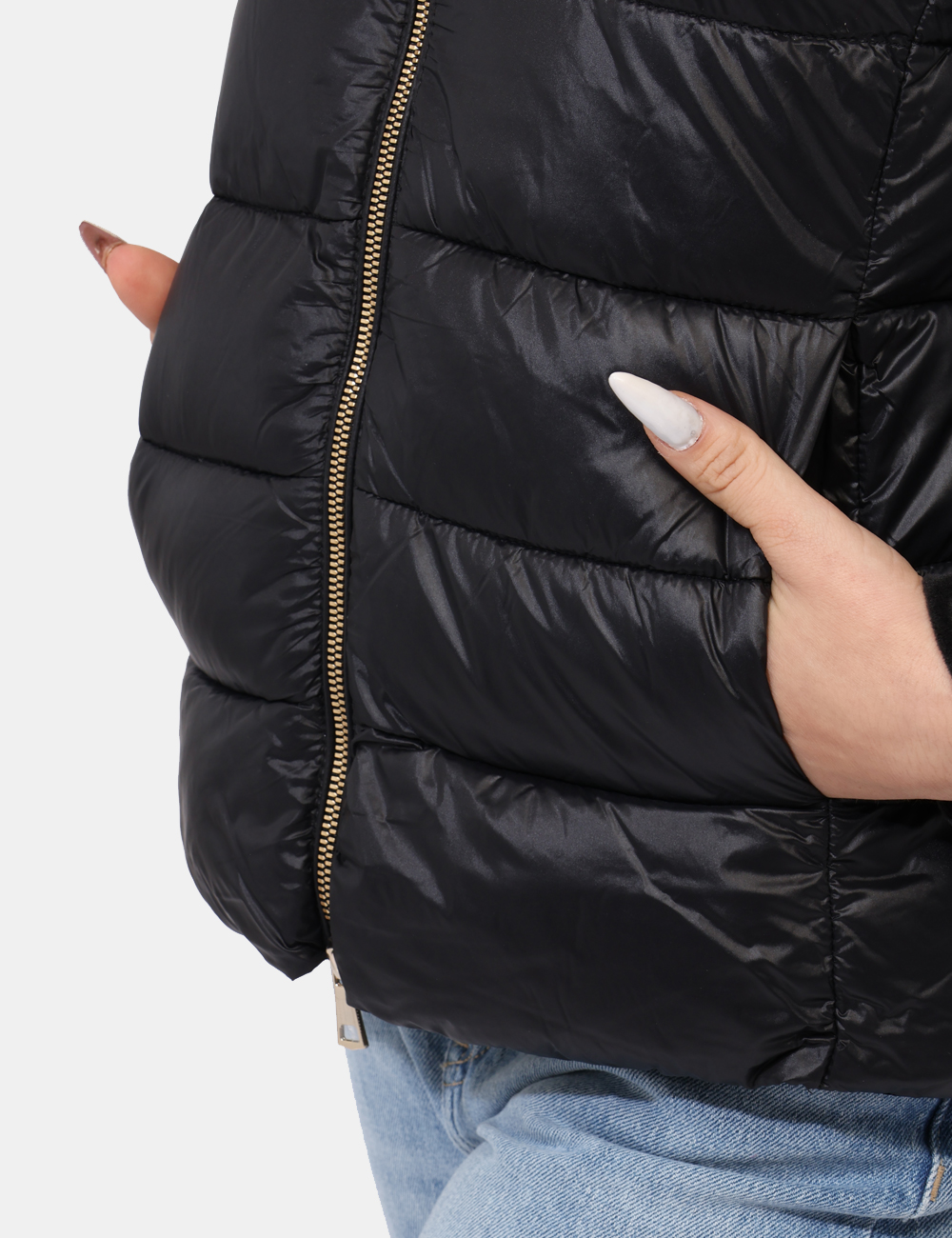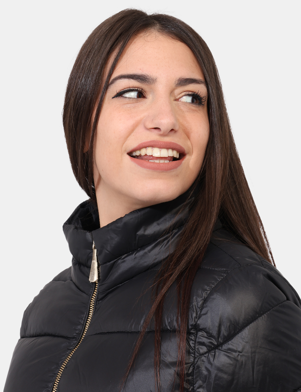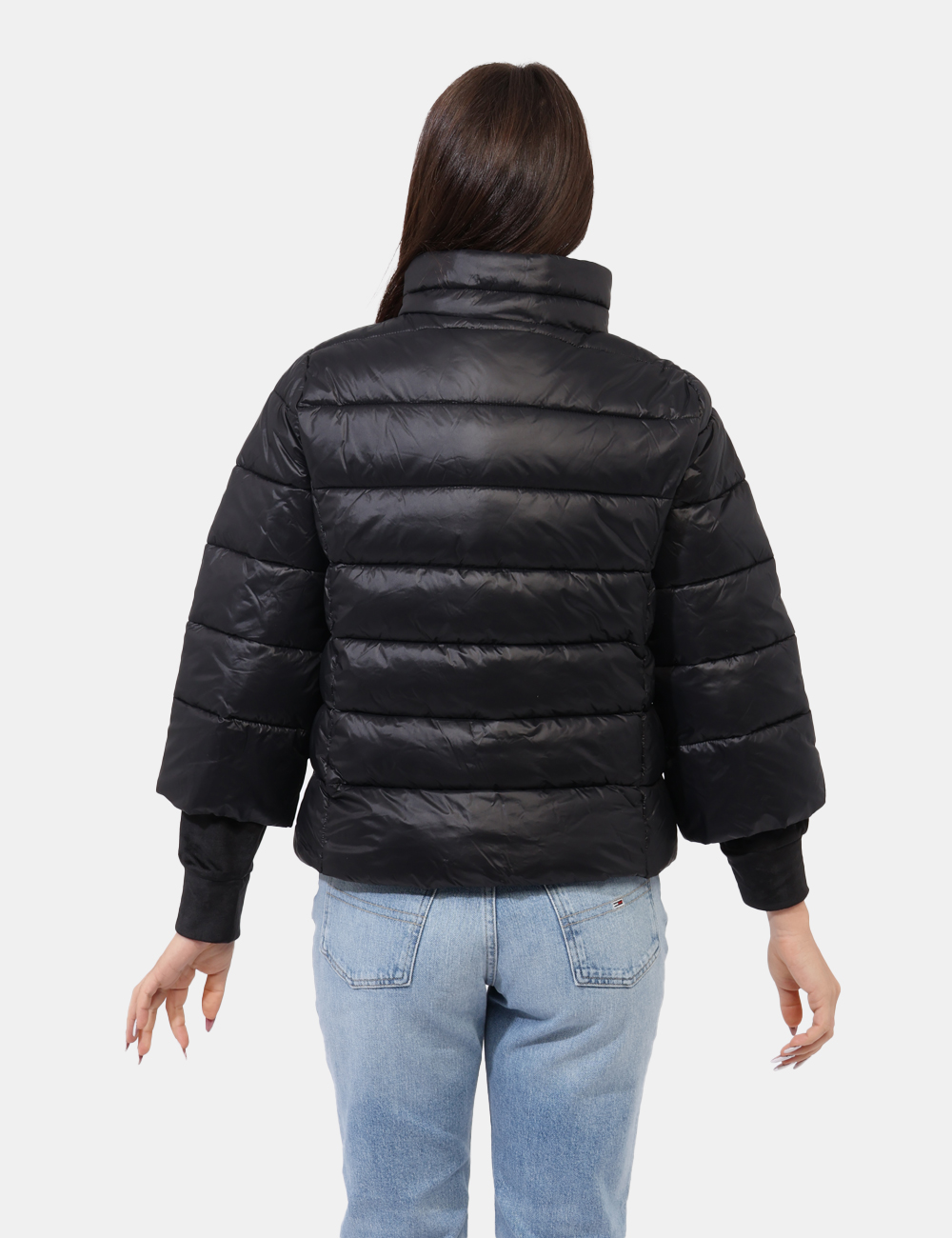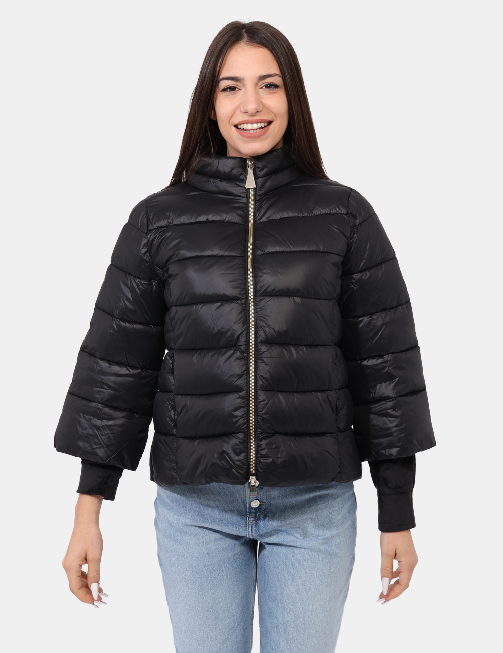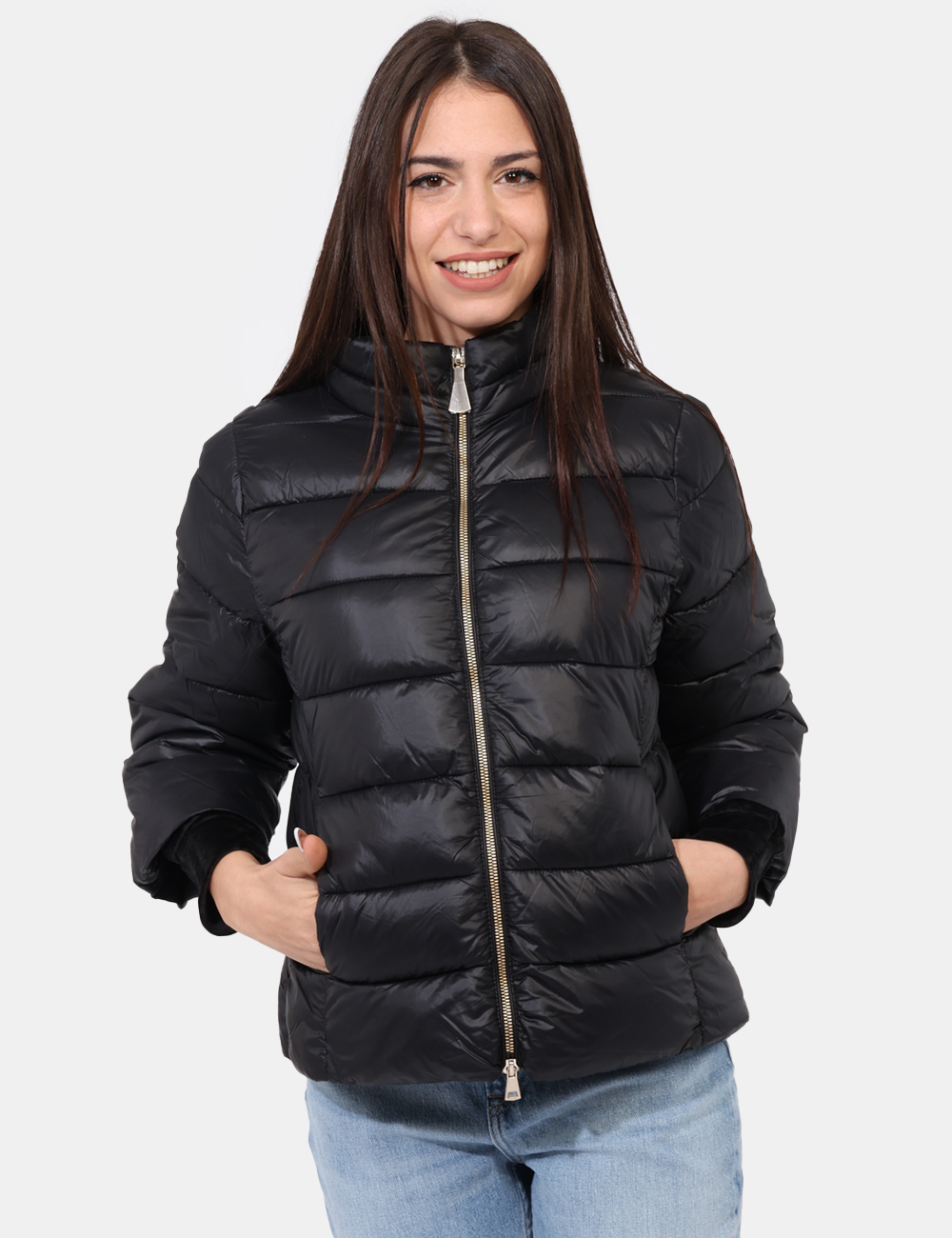 Piumino corto in total nero con tasche a taglio trasversale. La vestibilità è morbida e pratica grazie a chiusura a zip sul fronte. Il piumino è adatto per occasioni casual e facilmente combinabile. Dona un tocco di stile ai tuoi outfit invernali