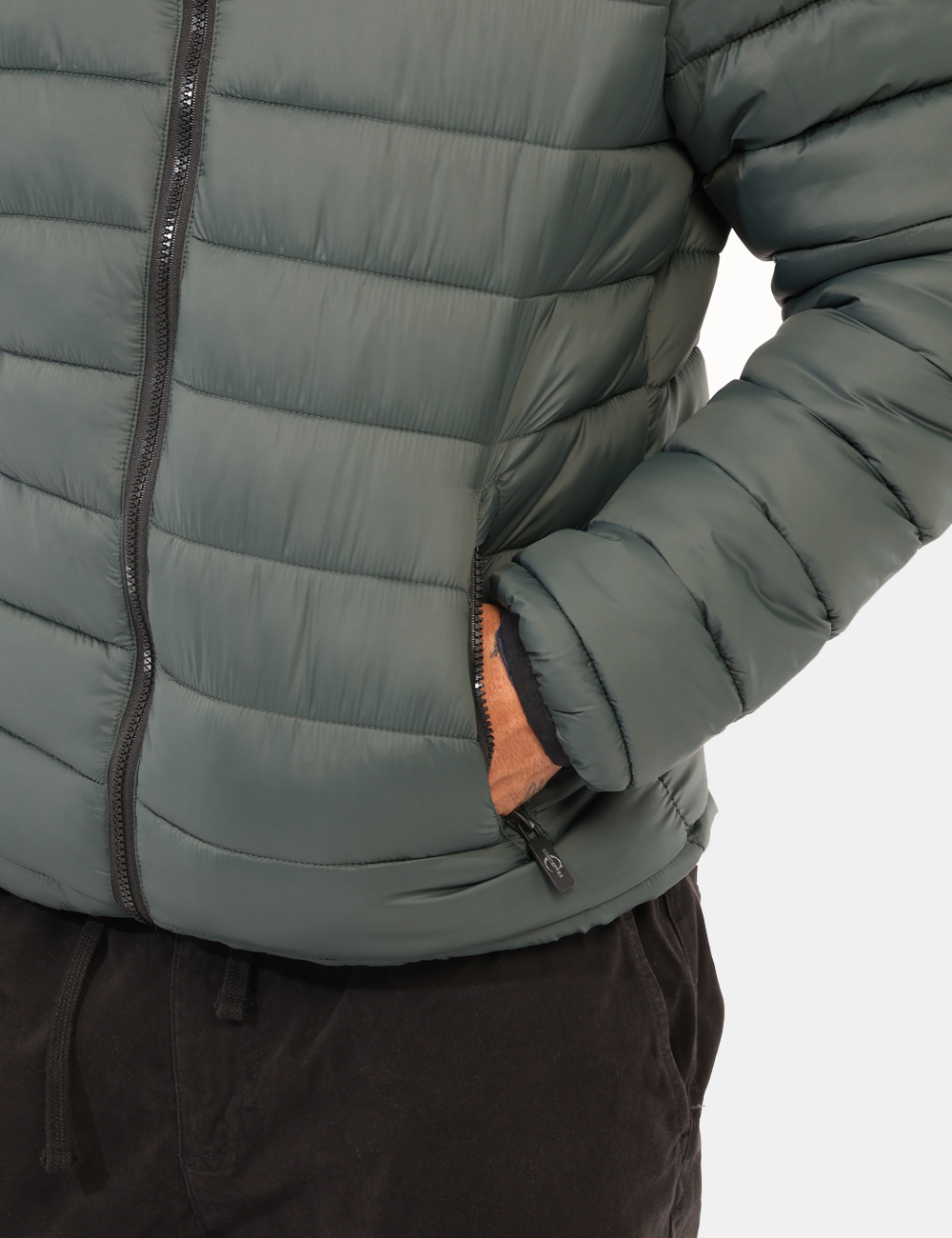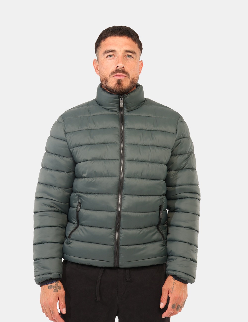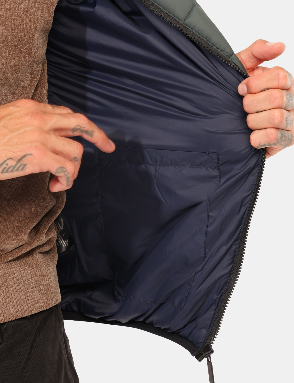 Piumino classico, leggero, in total verde scuro con tasche a taglio trasversale e chiusura a zip. La vestibilità è morbida e pratica grazie a zip sul fronte. Il piumino è adatto per occasioni casual e facilmente combinabile. Troppo comodo per poterne fare a meno.