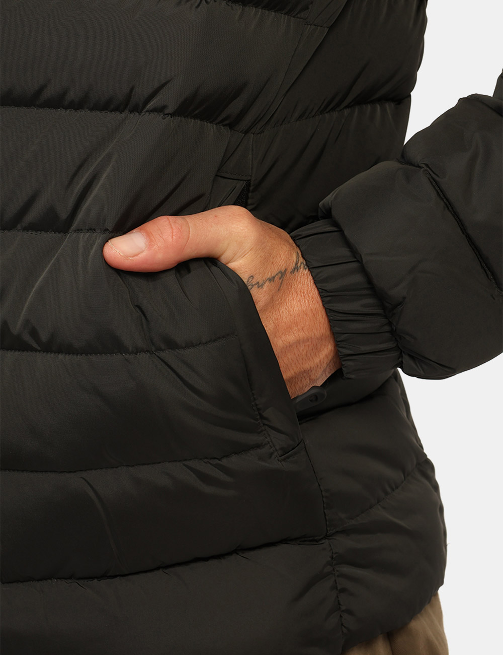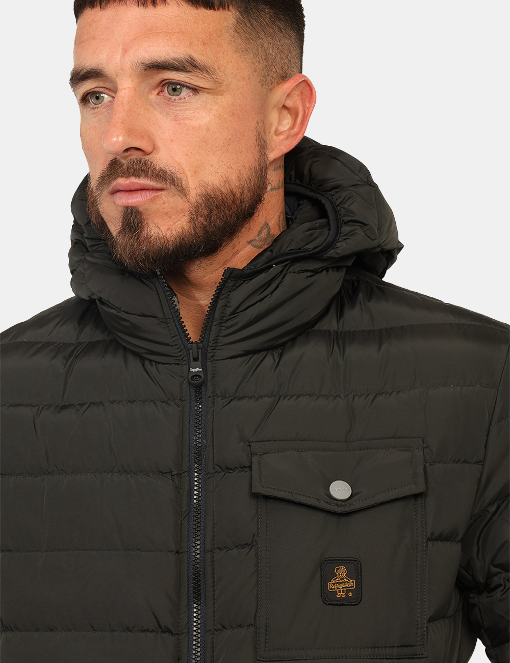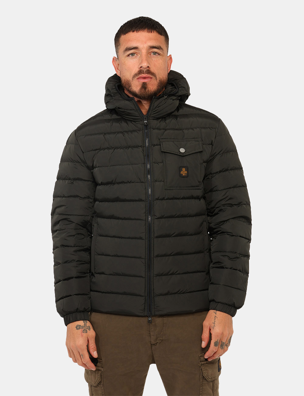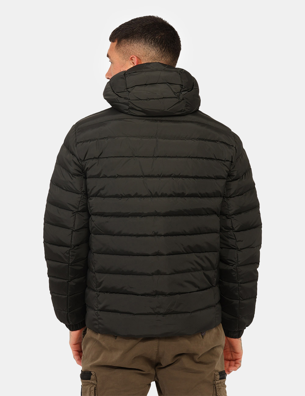 Piumino con cappuccio non removibile, in total nero, con numerose tasche più patch logo brand. La vestibilità è morbida e pratica grazie a zip sul fronte. Il piumino è adatto per occasioni casual e facilmente combinabile. Troppo comodo per poterne fare a meno.