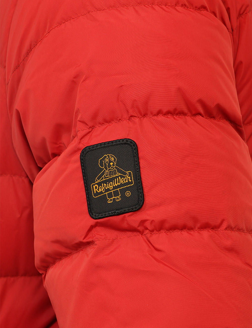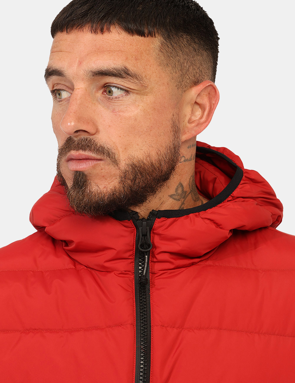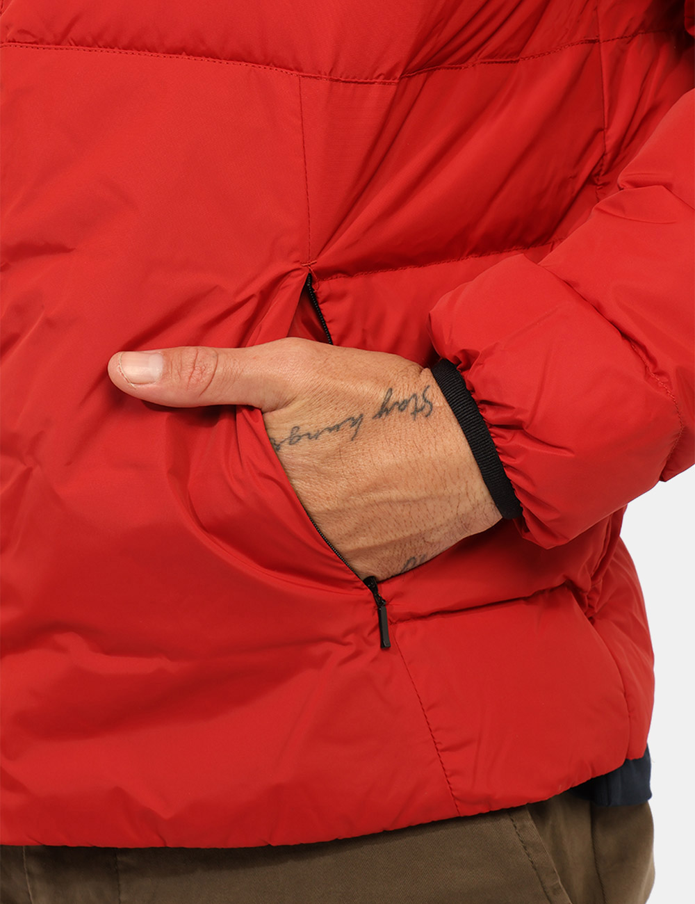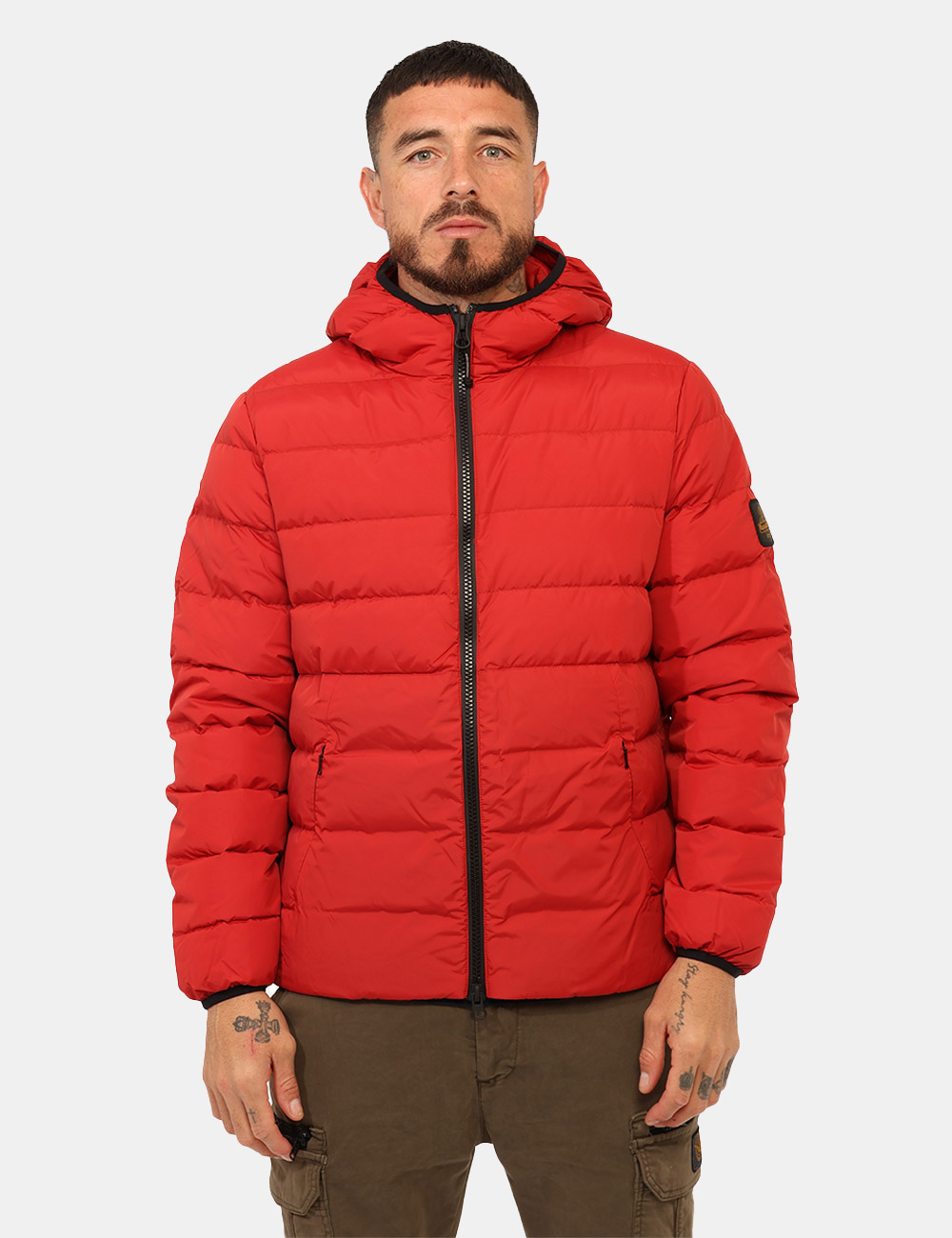 Piumino con cappuccio non removibile, in total rosso lava, con numerose tasche più patch logo brand. La vestibilità è morbida e pratica grazie a zip sul fronte. Il piumino è adatto per occasioni casual e facilmente combinabile. Troppo comodo per poterne fare a meno.