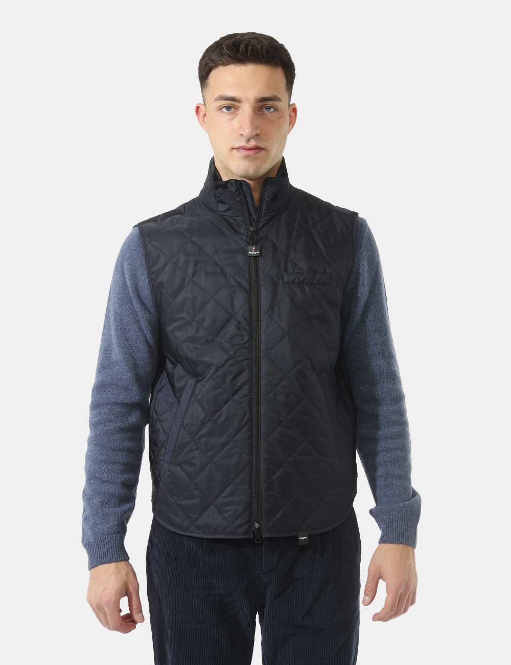 Piumino smanicato trapuntato in total blu navy, con tasche a taglio trasversale più taschino. La vestibilità è morbida e pratica grazie a zip sul fronte. Lo smanicato è adatto per occasioni casual e facilmente combinabile. Aggiungilo al tuo guardaroba e saprai sempre cosa indossare.