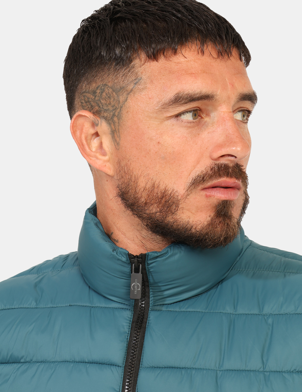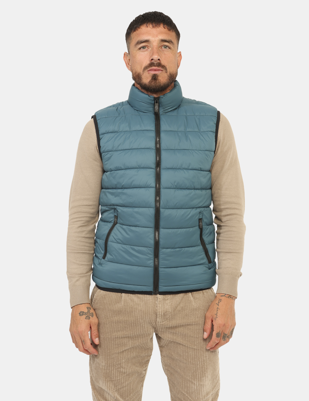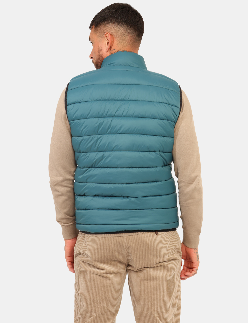 Piumino smanicato in total verde petrolio con tasche a taglio trasversale e chiusura a zip. La vestibilità è morbida e pratica grazie a cerniera sul fronte. Il piumino smanicato è adatto per occasioni casual e facilmente combinabile. Il tuo prossimo articolo nei prodotti salvati.