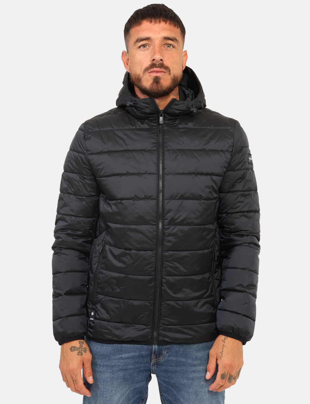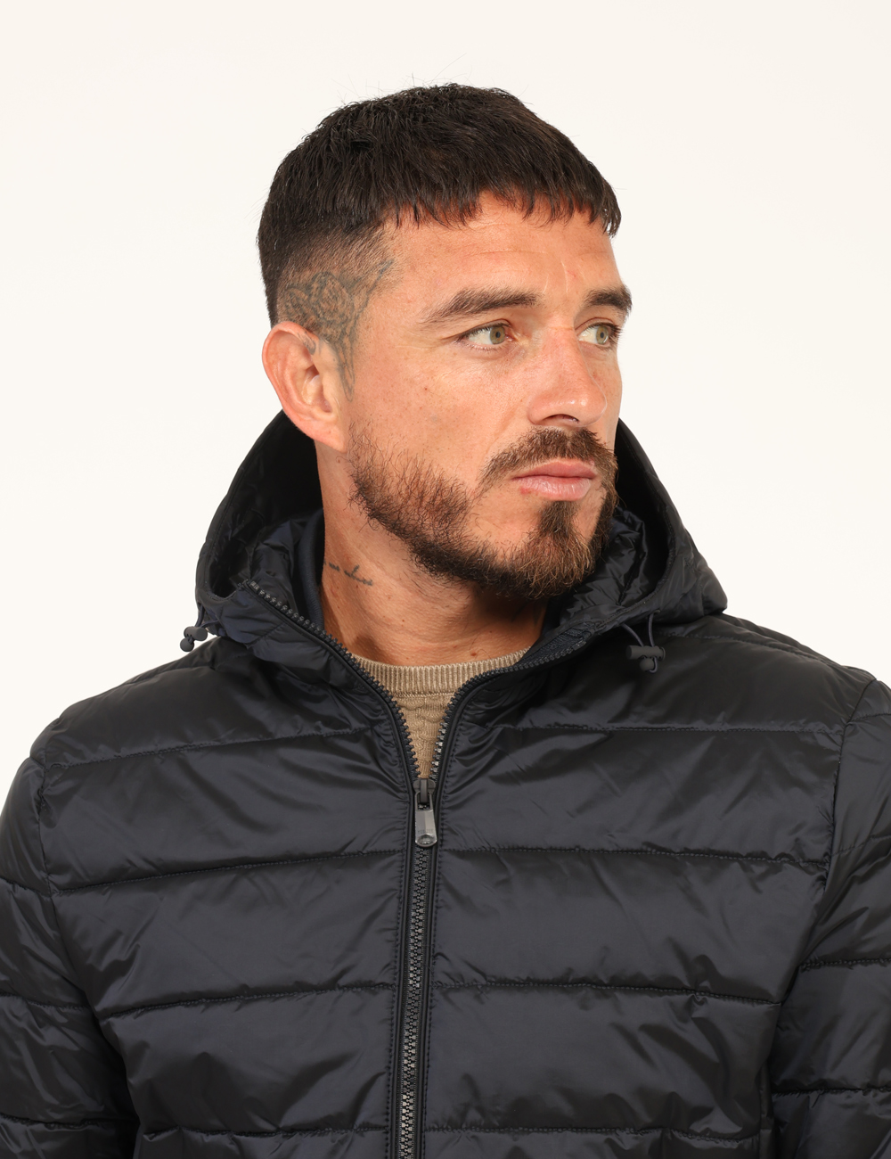Piumino con cappuccio in total nero con tasche a taglio trasversale e chiusura a zip. La vestibilità è morbida e pratica grazie a cerniera lungo il fronte. Il piumino è adatto per occasioni casual e ideale per l’inverno. Il tuo prossimo articolo nei prodotti salvati.