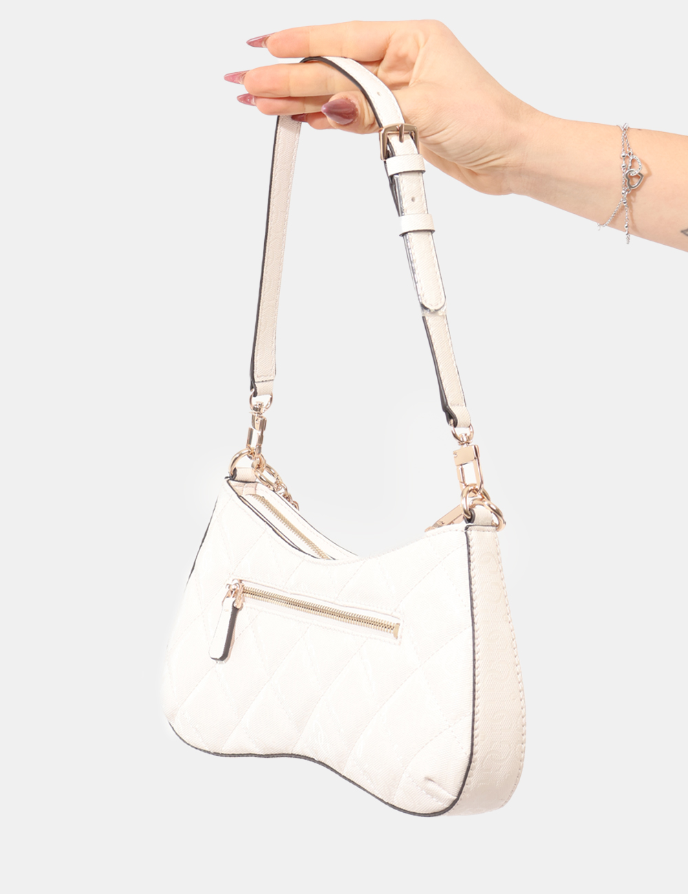 La Pochette GUESS Bianca è l’accessorio ideale per completare i look femminili della stagione primavera estate con eleganza e luminosità. Pensata per la donna che ama uno stile raffinato ma attuale, questa pochette si distingue per il suo design pulito impreziosito da dettagli iconici, come il logo lucido a contrasto e la catena argento con charms, che aggiungono un tocco glamour e ricercato. Il colore bianco, fresco e versatile, la rende perfetta per valorizzare outfit chiari e sofisticati.