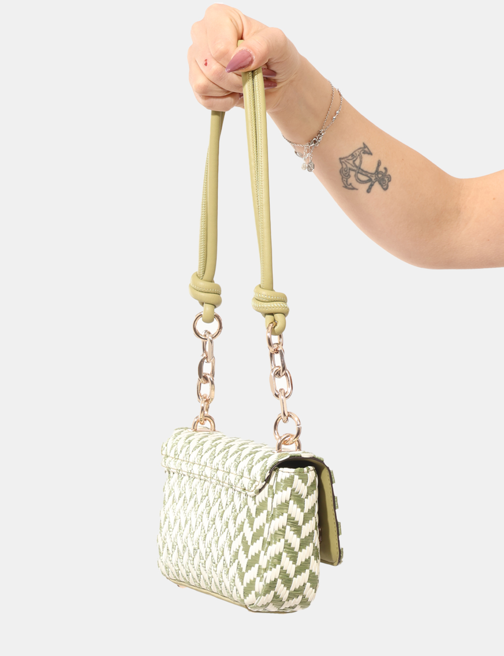 La Pochette GUESS Verde è l’accessorio ideale per completare i look della stagione primavera estate con uno stile fresco, naturale e femminile. Pensata per la donna che ama dettagli ricercati e materiali dall’aspetto estivo, questa pochette si distingue per il suo tessuto simil raffia, che richiama immediatamente l’atmosfera delle giornate luminose e rilassate. Il manico singolo dona praticità e un tocco contemporaneo, mentre la catena dorata aggiunge una nota elegante e luminosa, perfetta per valorizzare anche gli outfit più semplici. Il colore verde completa il design con una sfumatura naturale e di tendenza, facile da abbinare.