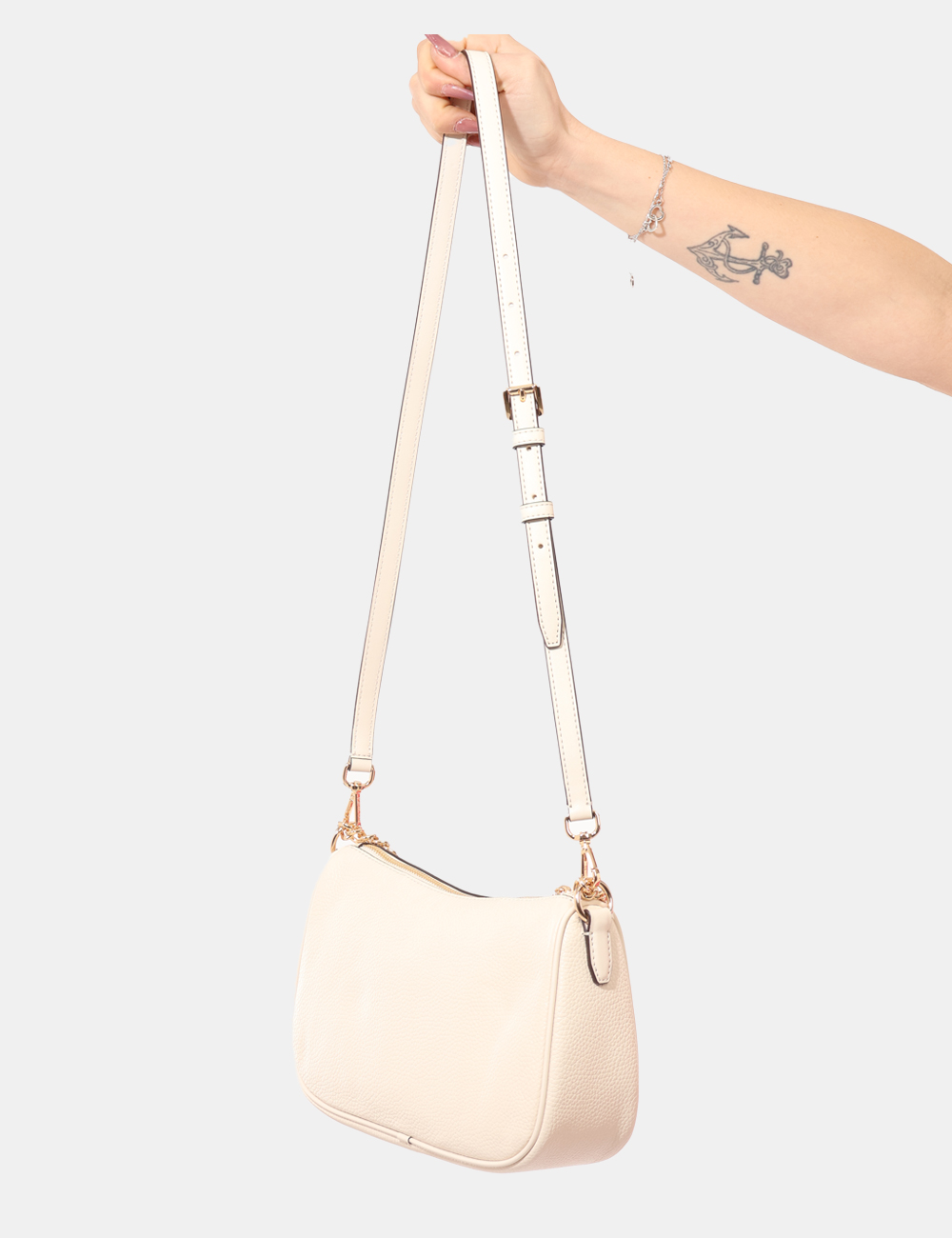 Realizzata in 100% poliuretano, questa pochette assicura resistenza, leggerezza e facilità di manutenzione, risultando adatta a un utilizzo frequente in ogni periodo dell’anno. La pochette con catena dorata e fibbie in tinta si abbina perfettamente a pantaloni scuri o a una gonna a contrasto per un look elegante, ma completa con stile anche outfit più casual, creando un equilibrio raffinato e moderno.
