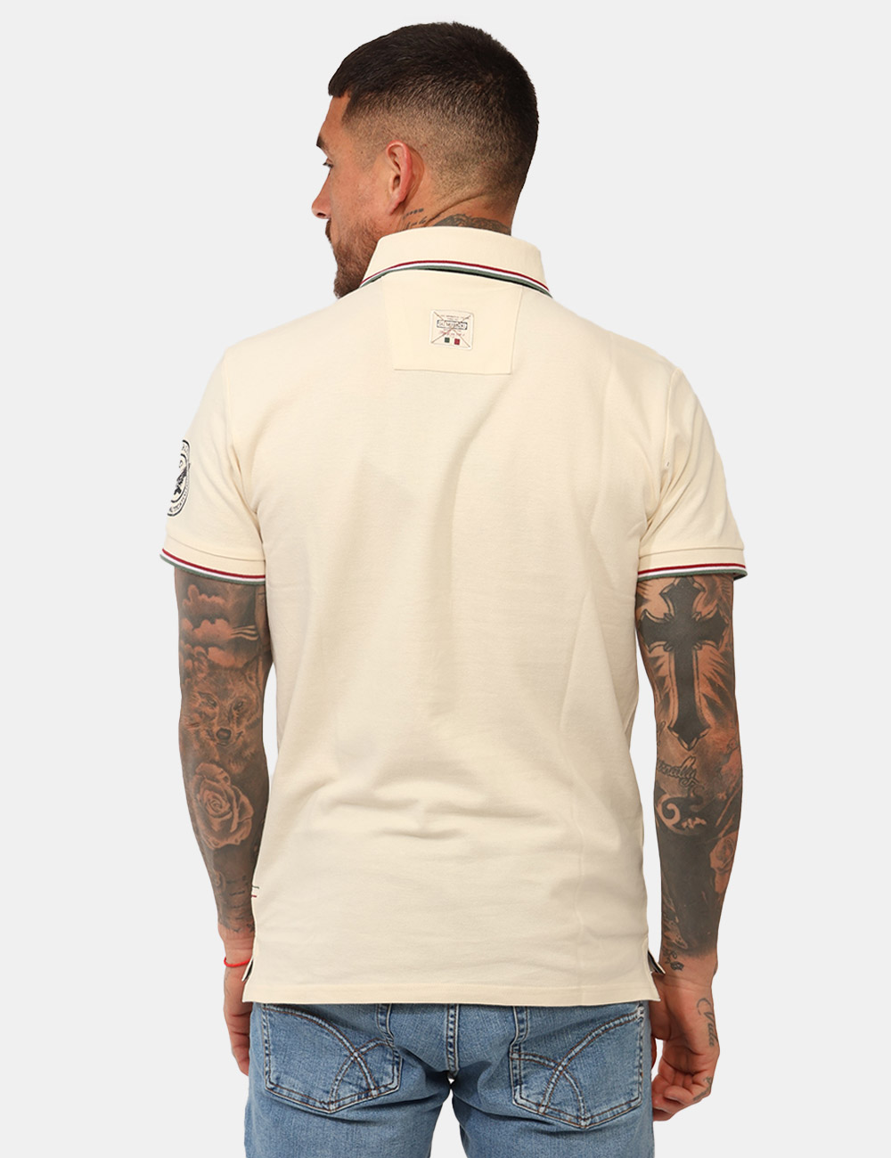 Puoi abbinarla a jeans e sneakers per un look casual e dinamico, oppure scegliere pantaloni chino per un outfit più raffinato ma rilassato. La polo con scritte e disegno in alto sia a destra che a sinistra, righe colori italiani sul bordo colletto è ideale per chi desidera distinguersi con eleganza senza rinunciare alla praticità.