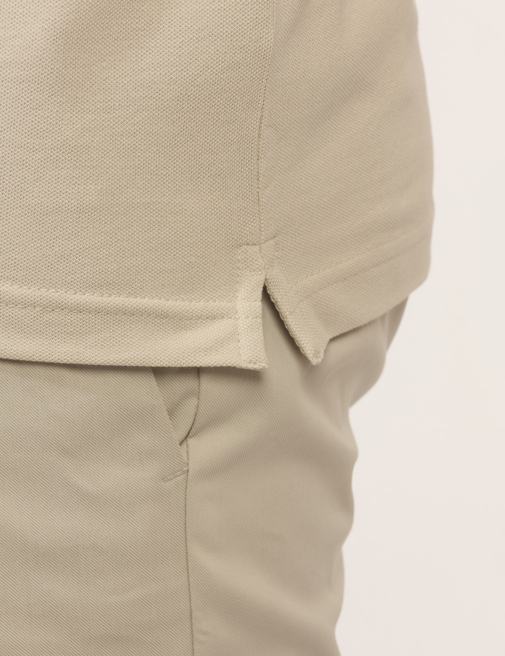 Il design si distingue per dettagli iconici: Polo con patch logo brand, colletto peter pan e bottoni ad asola. Il colletto dona un tocco raffinato e contemporaneo, mentre il logo applicato aggiunge personalità senza risultare eccessivo. Il beige, neutro e luminoso, rende il capo facile da abbinare e perfetto per la bella stagione.