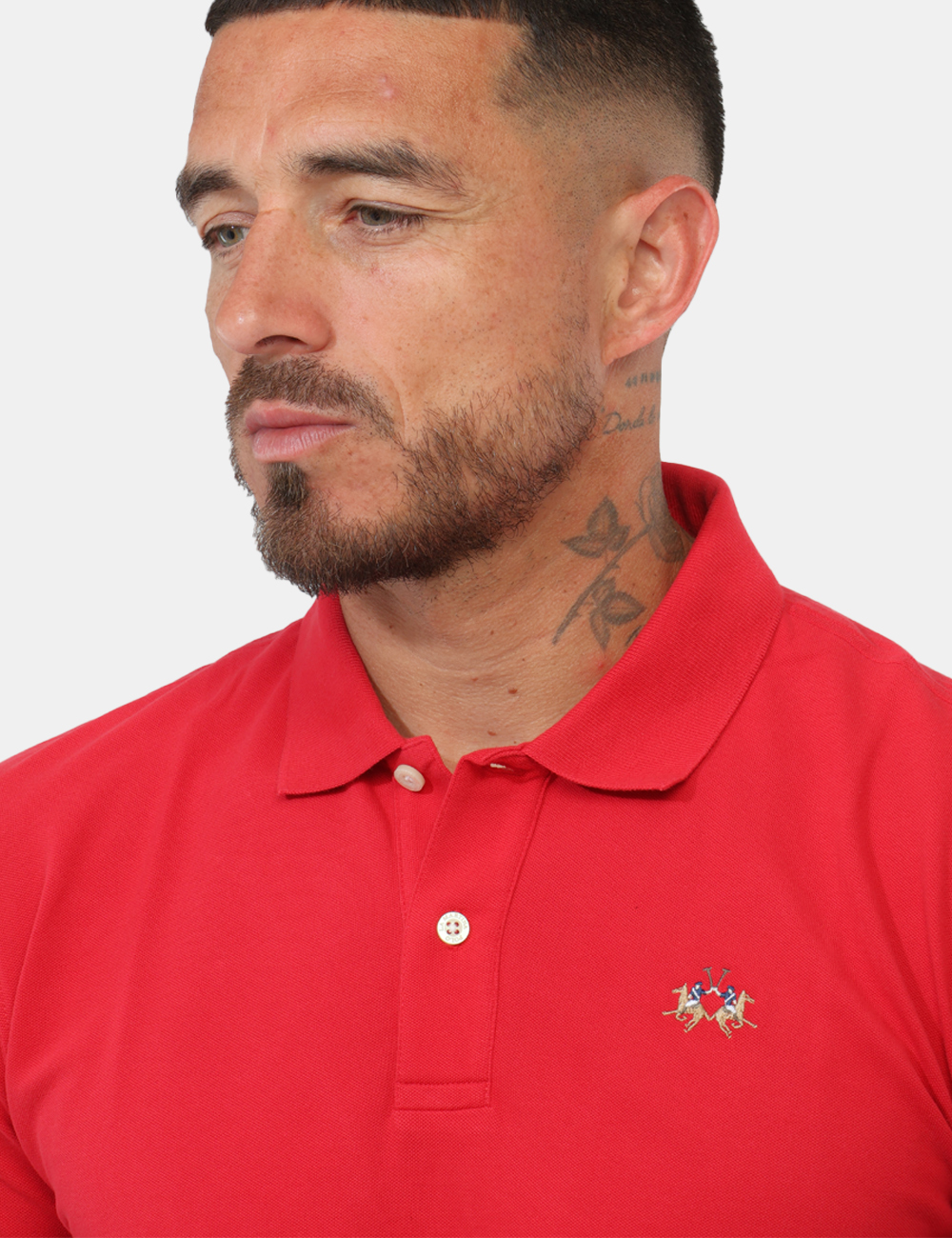 La Polo LA MARTINA Rossa è il capo perfetto per chi desidera unire semplicità e carattere in un unico look. Realizzata in morbido tessuto composto da 95% cotone e 5% elastina, garantisce comfort, traspirabilità e una vestibilità che si adatta naturalmente ai movimenti. È una polo da uomo adatta in tutte le stagioni, ideale per accompagnarti con stile in ogni momento della giornata.