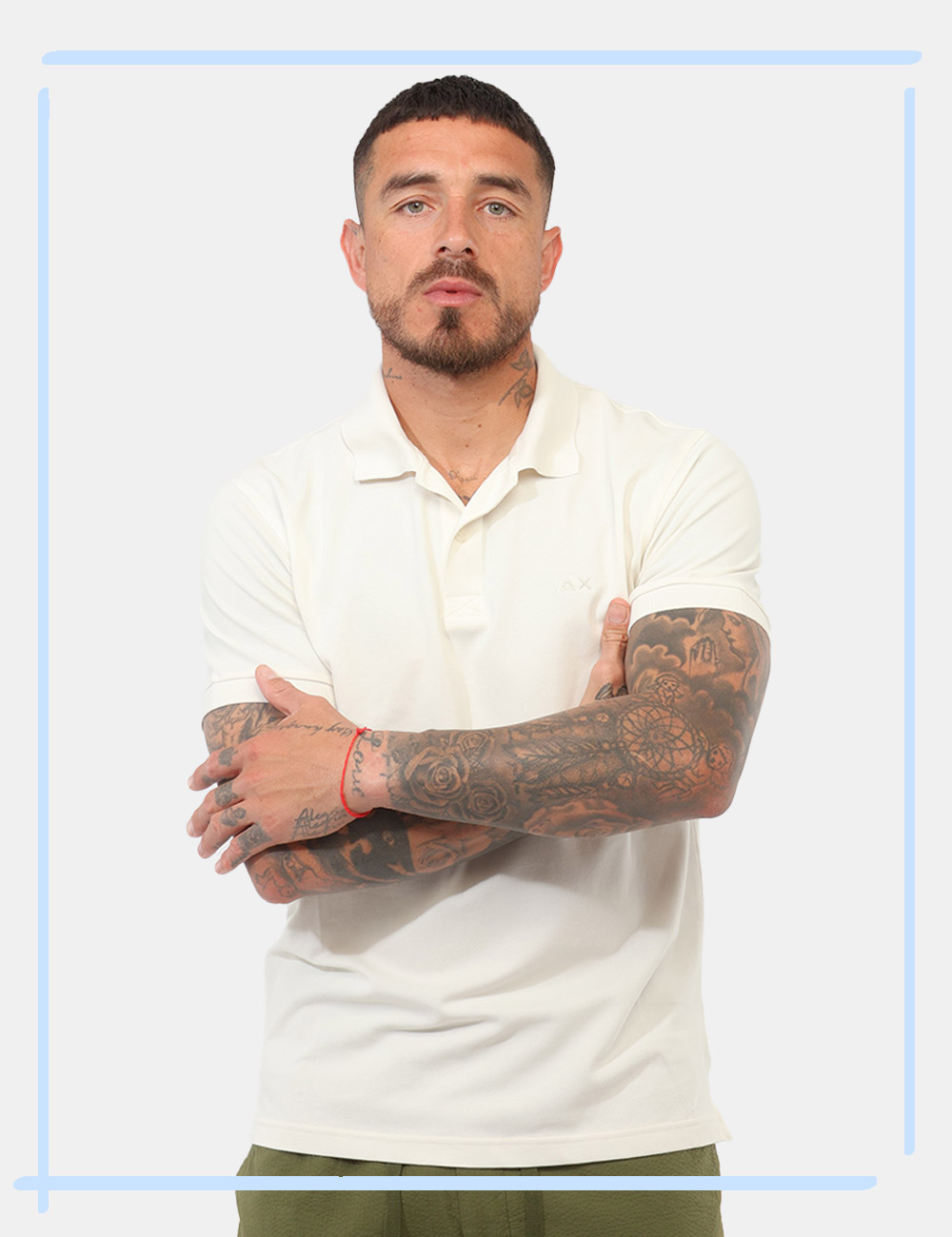 Parte di un campionario esclusivo di stagione, questa polo con logo SUN68 ricamato tono su tono è un pezzo unico, pensato per chi ama distinguersi con semplicità.