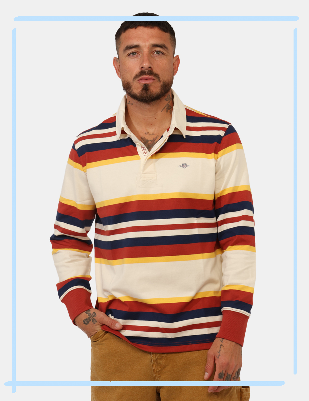 Polo in total arancione e bianco lavorato con patch logo brand nero ad altezza cuore. Presente colletto alla peter pan in arancione che richiama il profilo delle maniche corte. La vestibilità è morbida e pratica grazie a bottoni ad asola in tinta ad altezza girocollo. La polo è adatta per occasioni casual e facilmente combinabile per outfit diurni. Inseriscila nel carrello per un classico che non tramonta mai.
