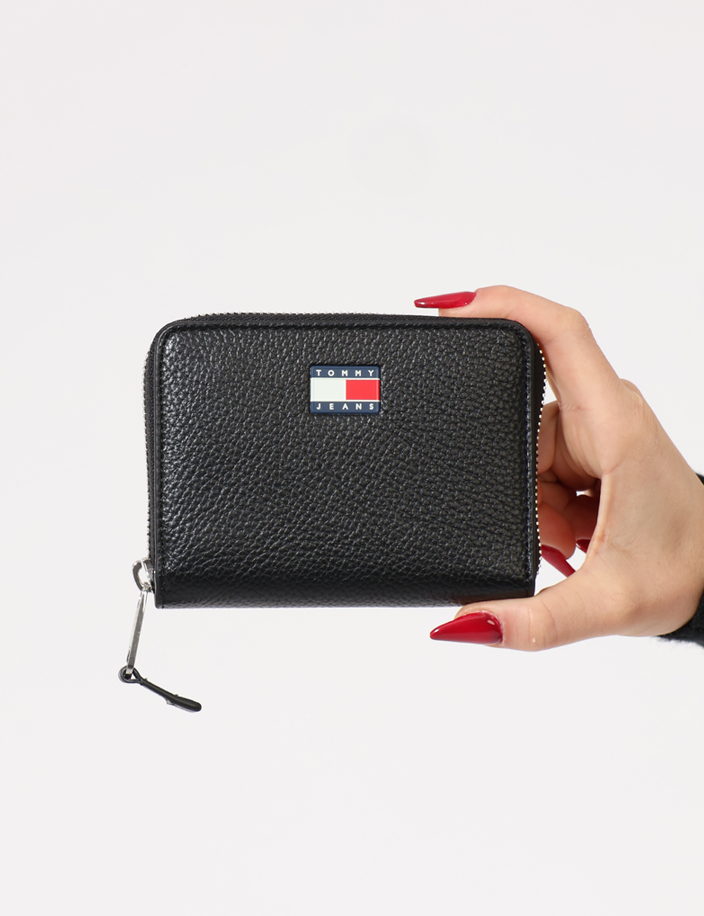 Portafogli total nero con unico scompartimento, chiusura a zip e taschine interne a fessura. Pratico e maneggevole è ideale con ogni tipo di borsa. L’accessorio di cui non puoi fare a meno.