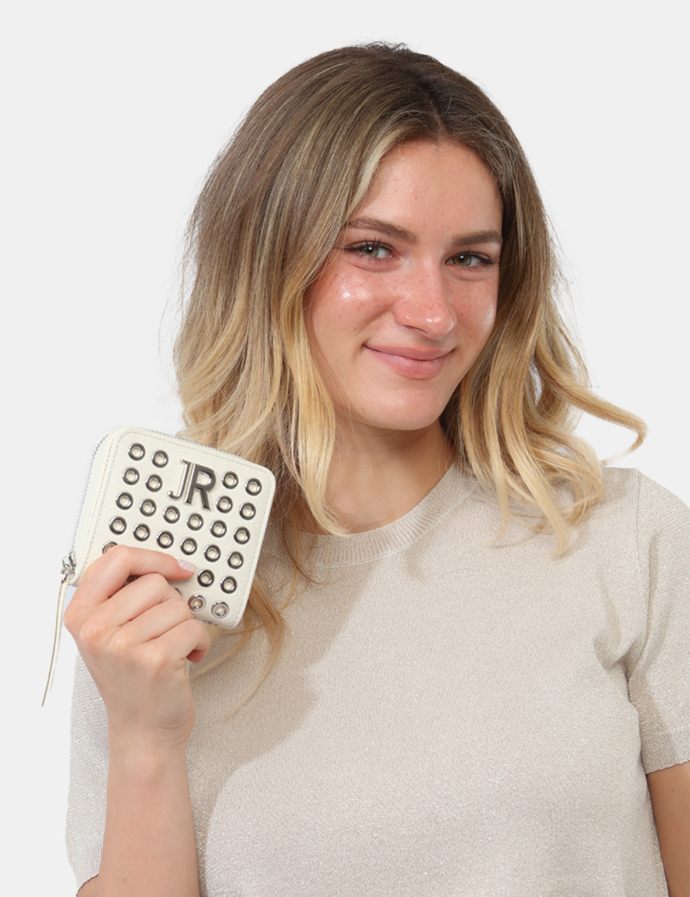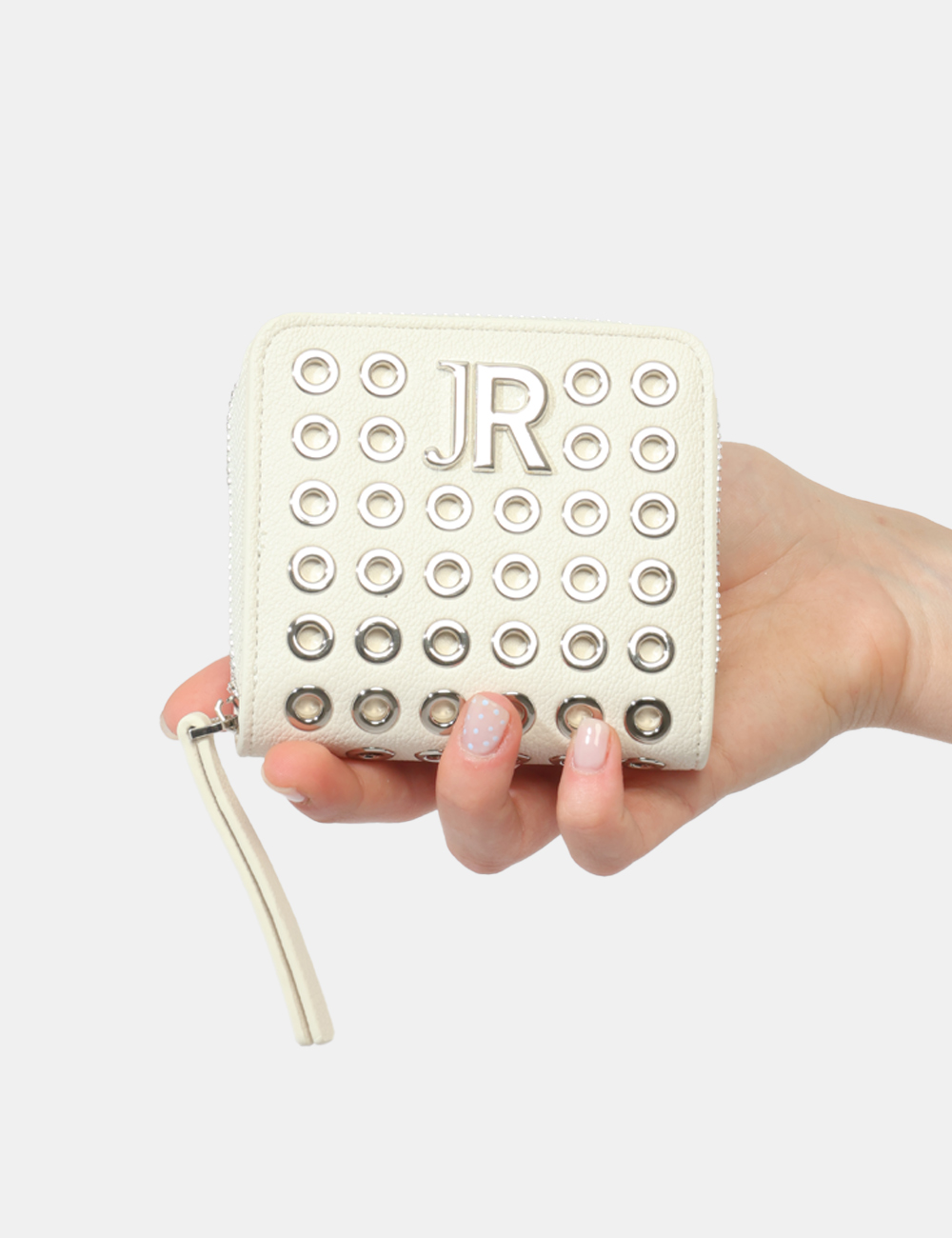 Compatto, luminoso e dal carattere deciso, questo portafoglio da donna firmato JOHN RICHMOND è l’accessorio perfetto per completare il tuo stile con un tocco distintivo. Il colore bianco, elegante e versatile, è arricchito da dettagli grintosi come le borchiette forate argento, che donano personalità e rendono questo modello unico nel suo genere.