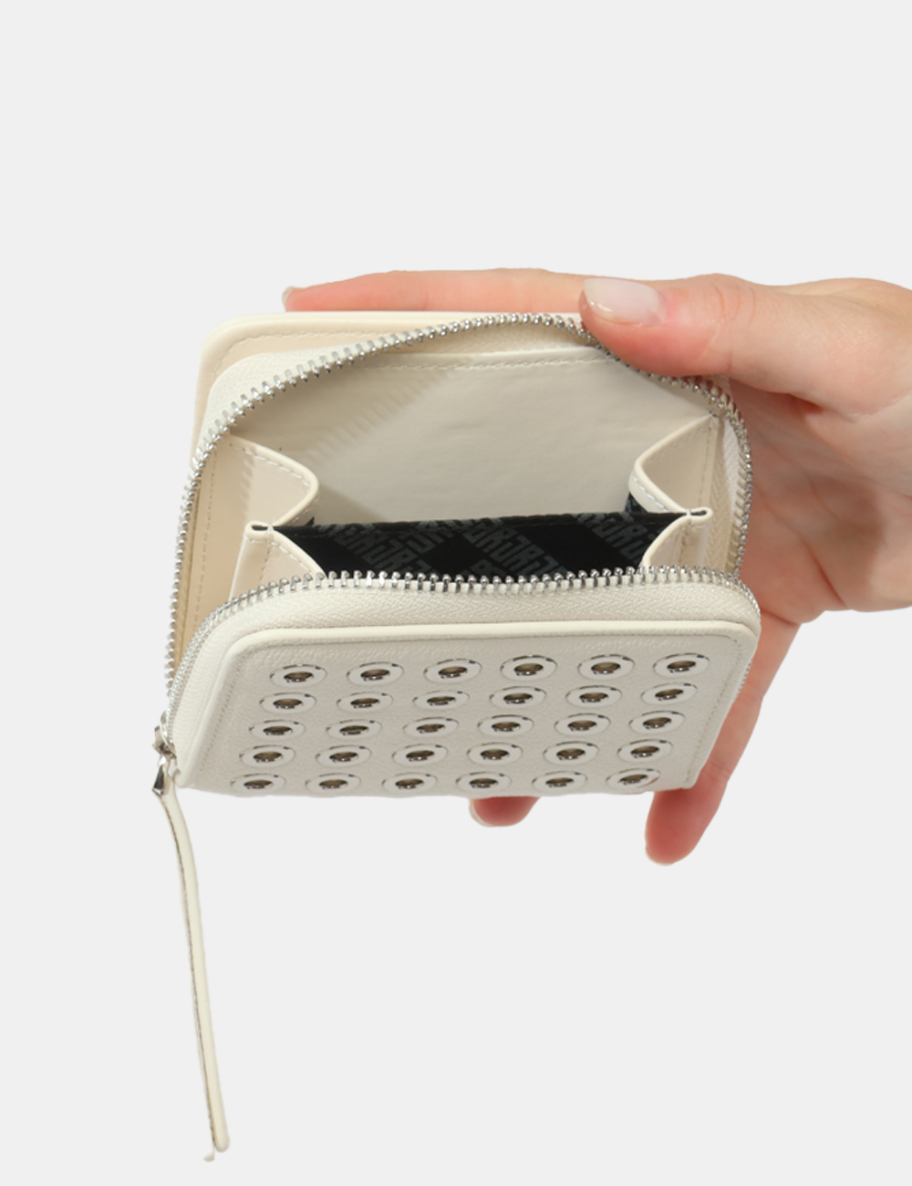 Il portafoglio da donna adatto in tutte le stagioni è ideale da utilizzare nel tempo libero o durante le tue giornate più dinamiche, quando hai bisogno di un accessorio funzionale ma curato nei dettagli. Questo portafoglio con borchiette forate argento si abbina perfettamente a una borsa coordinata JOHN RICHMOND oppure può essere accostato a accessori dai toni neutri per creare un contrasto elegante e moderno.