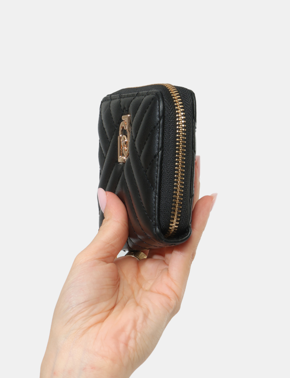 Puoi portarlo con te nel tempo libero, durante una giornata di lavoro o una serata fuori, inserendolo facilmente nella tua borsa preferita. Questo portafoglio con tessuto trapuntato, zip dorata si abbina perfettamente a un look casual o a uno stile più elegante, aggiungendo sempre un tocco curato e femminile.