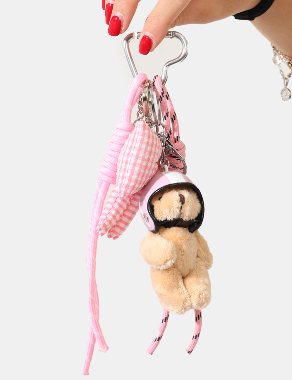 Portachiavi rosa con orso e fiocco