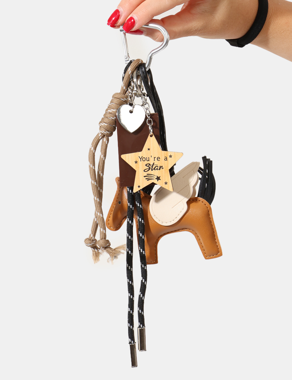 Portachiavi con unicorno e barretta di cioccolato, abbellito da una stella con la dicitura “like a star”