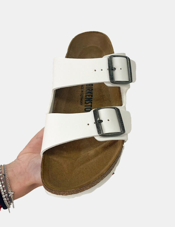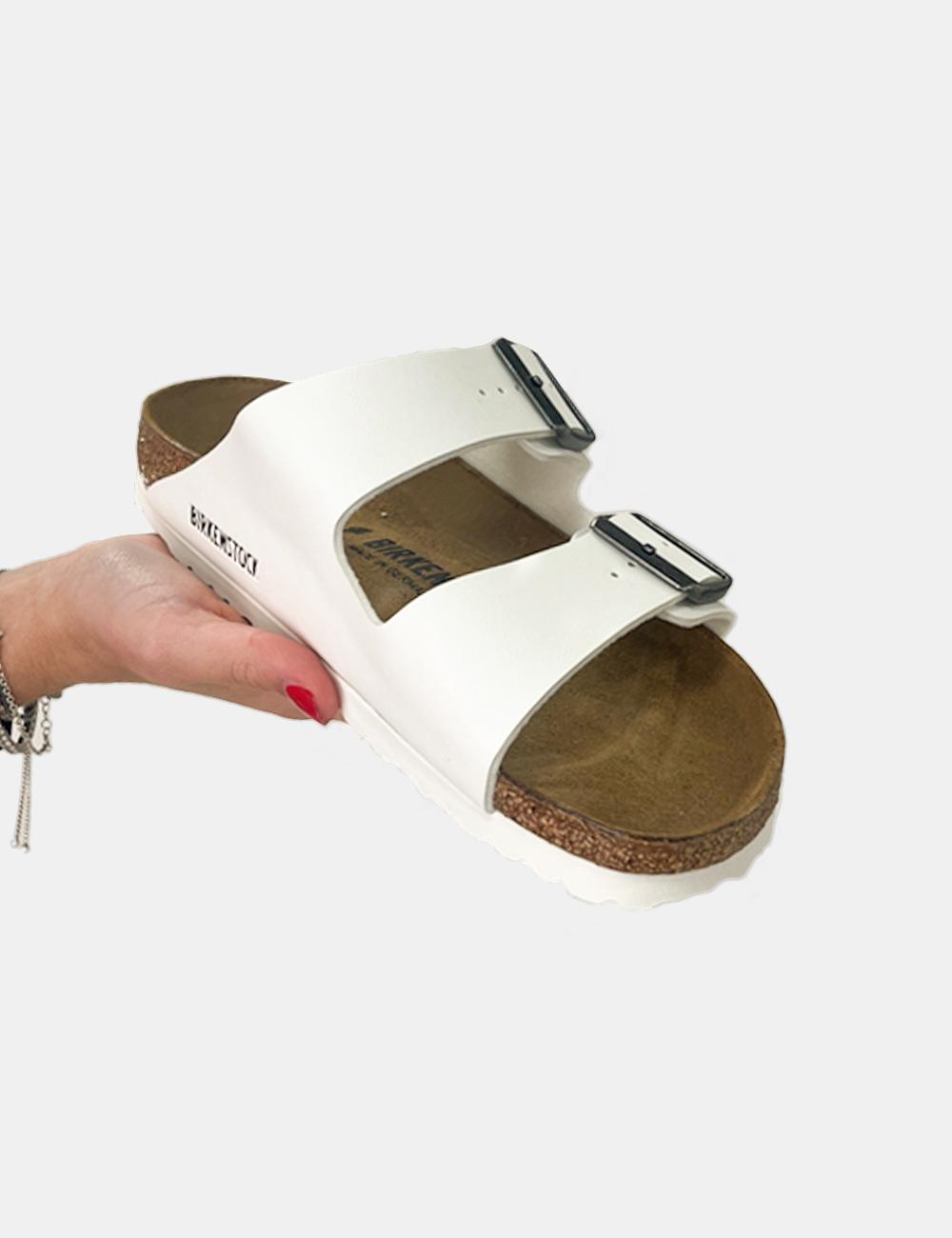 Sandali modello Arizona con doppio cinturino regolabile in tinta bianca. La calzata è confortevole e stabile anche grazie alla suola sagomata. I sandali sono adatti per occasioni casual e ideali per outfit diurni. Inseriscili nel carrello se cerchi benessere e stile..