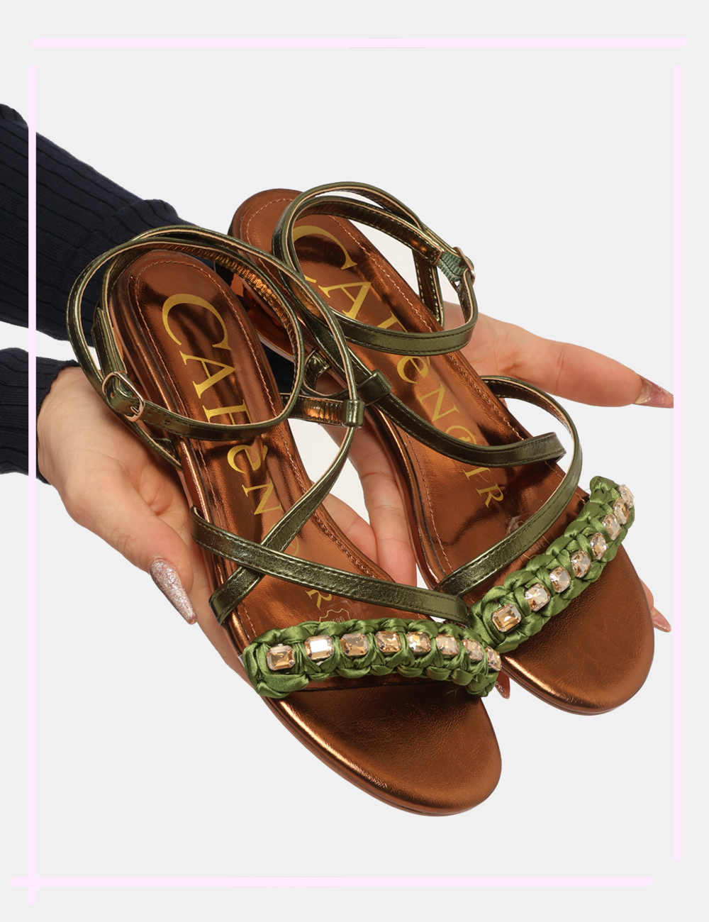 I Sandali CAFeNOIR Verdi sono la scelta ideale per chi desidera aggiungere un tocco originale e luminoso ai propri look della stagione più calda. Questi sandali da donna adatti alla primavera estate si distinguono per la loro tonalità verde elegante e contemporanea, perfetta per creare outfit freschi e raffinati durante le giornate primaverili ed estive. Il design è arricchito da una particolare tomaia bronzo e da strass applicati sulla fascia che donano brillantezza e carattere alla calzatura, rendendo questi sandali con tomaia bronzo e strass sulla fascia un modello femminile e ricercato. Realizzati in vera pelle, offrono qualità, resistenza e una calzata confortevole che accompagna il piede con naturalezza durante tutta la giornata. La struttura del sandalo garantisce stabilità e leggerezza, permettendoti di muoverti con comodità anche nelle giornate più dinamiche. Questo modello appartiene al campionario esclusivo di stagione ed è disponibile come pezzo unico nella taglia 37, un dettaglio che lo rende particolarmente speciale per chi ama indossare articoli originali e difficili da trovare. I Sandali CAFeNOIR Verdi sono perfetti da indossare nel tempo libero, durante una passeggiata in città, una giornata di shopping o un aperitivo estivo all’aperto. Puoi abbinarli facilmente a un vestito leggero per un look femminile e raffinato oppure a shorts per uno stile casual fresco e contemporaneo. Versatili e luminosi, rappresentano una scelta ideale per completare con stile il tuo guardaroba della stagione primavera estate. Tutti i prodotti disponibili su SecondaStrada.com sono originali e accuratamente selezionati. Codice articolo C1FC9026 CA CB.