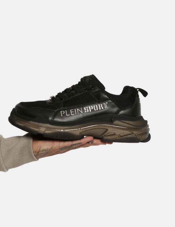 Scarpa sneakers in total nero in tela e simil pelle con logo brand argentati. L’indossatura è pratica e regolabile grazie a lacci in tinta abbinata. Le sneakers sono ideali per outfit casual di giorno e di sera. Per non sbagliare falle tue.