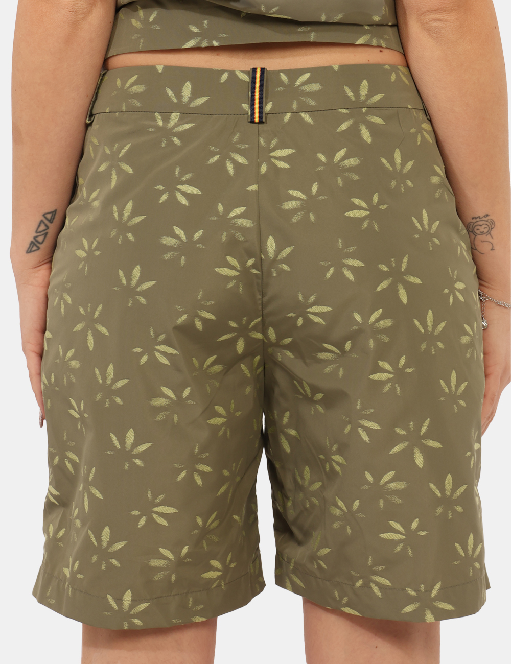 Shorts K-WAY da donna dal carattere fresco e contemporaneo, perfetti per accompagnarti con stile nelle giornate più dinamiche. Questo modello unisce comfort e personalità grazie alla raffinata stampa allover foglie in tono su tono, un dettaglio discreto ma distintivo che valorizza il design senza appesantirlo.