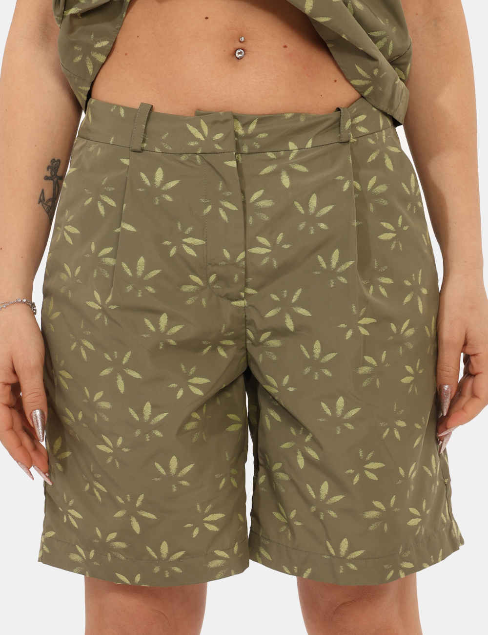 Il modello presenta tasche funzionali e chiusura con bottone più zip, per un fit stabile e confortevole durante tutta la giornata. Gli Shorts con stampa allover foglie in tono su tono, tasche, bottone più zip sono ideali nel tempo libero, per una passeggiata in città o per un weekend casual all’aria aperta.