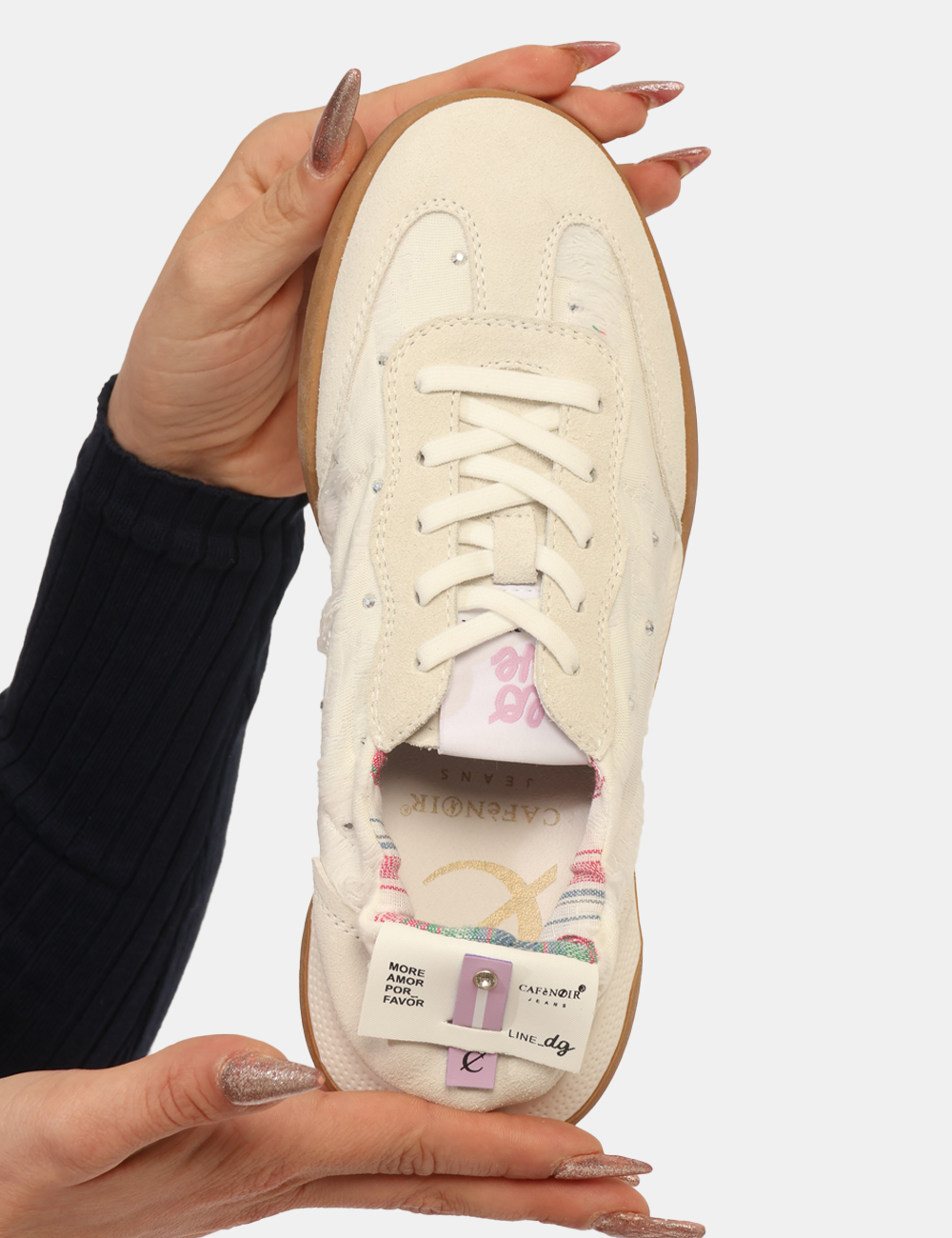 Le Sneakers CAFeNOIR Bianco sono la scelta ideale per chi desidera unire comfort, stile e un tocco luminoso ai propri look quotidiani. Queste sneakers da donna adatto alla primavera estate si distinguono per il loro design elegante e contemporaneo, valorizzato da raffinati strass argento che donano brillantezza e personalità alla calzatura. Il colore bianco, fresco e versatile, rende queste sneakers con strass argento perfette per completare con naturalezza outfit casual ma curati, ideali per la stagione più luminosa dell’anno. Realizzate in pelle e tessuto, offrono una combinazione equilibrata tra resistenza, comfort e traspirabilità, caratteristiche fondamentali per accompagnarti durante tutta la giornata. La struttura della scarpa garantisce una calzata stabile e confortevole, permettendoti di affrontare con stile le attività quotidiane. Questo modello appartiene al campionario esclusivo di stagione ed è disponibile come pezzo unico nella taglia 37, un dettaglio che lo rende particolarmente speciale per chi ama indossare articoli originali e difficili da trovare. Le Sneakers CAFe`NOIR Bianco sono perfette da indossare nel tempo libero, durante una passeggiata in città, una giornata di shopping o un incontro informale con le amiche. Puoi abbinarle facilmente a jeans e t-shirt per un look casual moderno oppure a un vestito leggero per creare un contrasto femminile e contemporaneo. Versatili e luminose, rappresentano una scelta ideale per completare con stile il tuo guardaroba della stagione primavera estate. Tutti i prodotti disponibili su SecondaStrada.com sono originali e accuratamente selezionati. Codice articolo C1DG9612 CA CB.