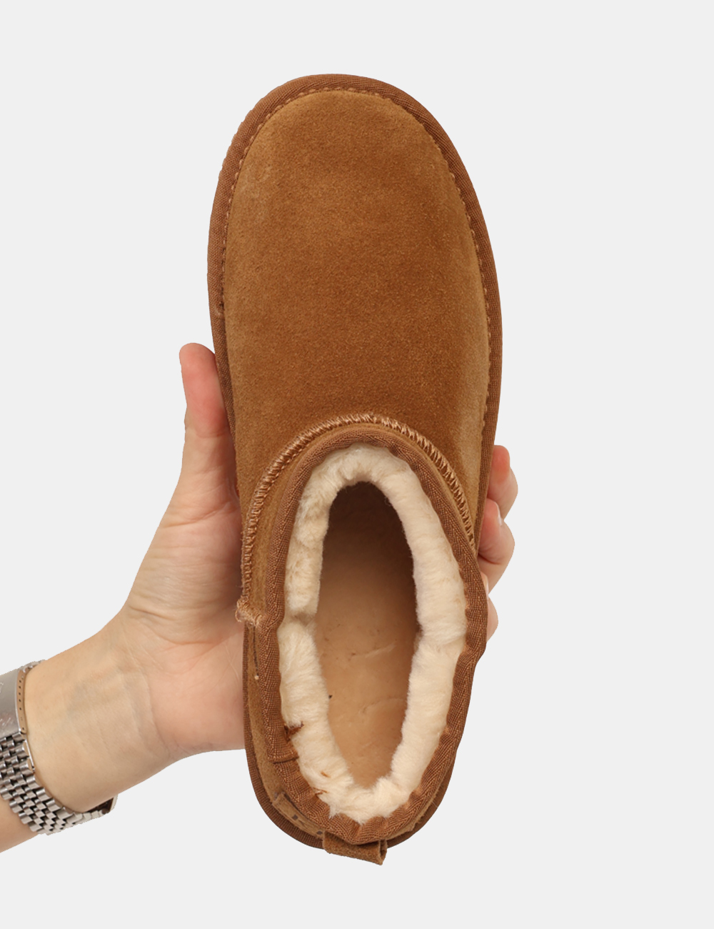 Stivaletti modello moffole, in tessuto scamosciato total cammello, con interno caldo in fake fur bianco. L’indossatura è morbida e avvolgente. Gli stivaletti sono adatti per occasioni casual, ideali per l’inverno. Affronta la stagione più fredda con stile e morbidezza.