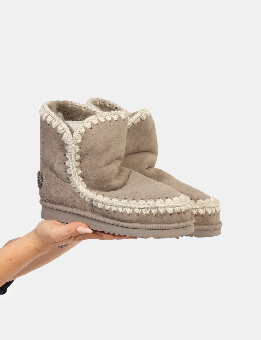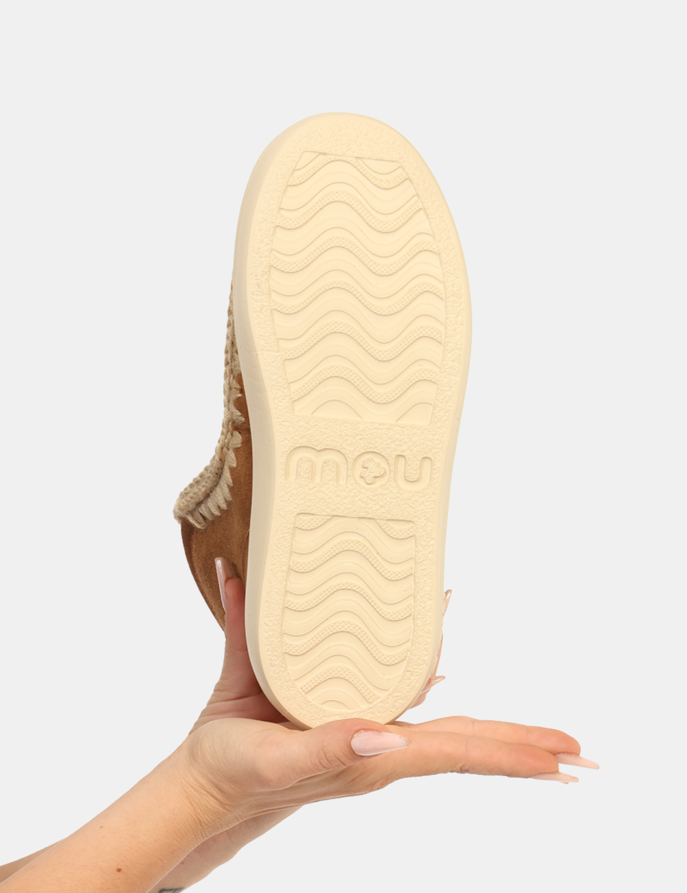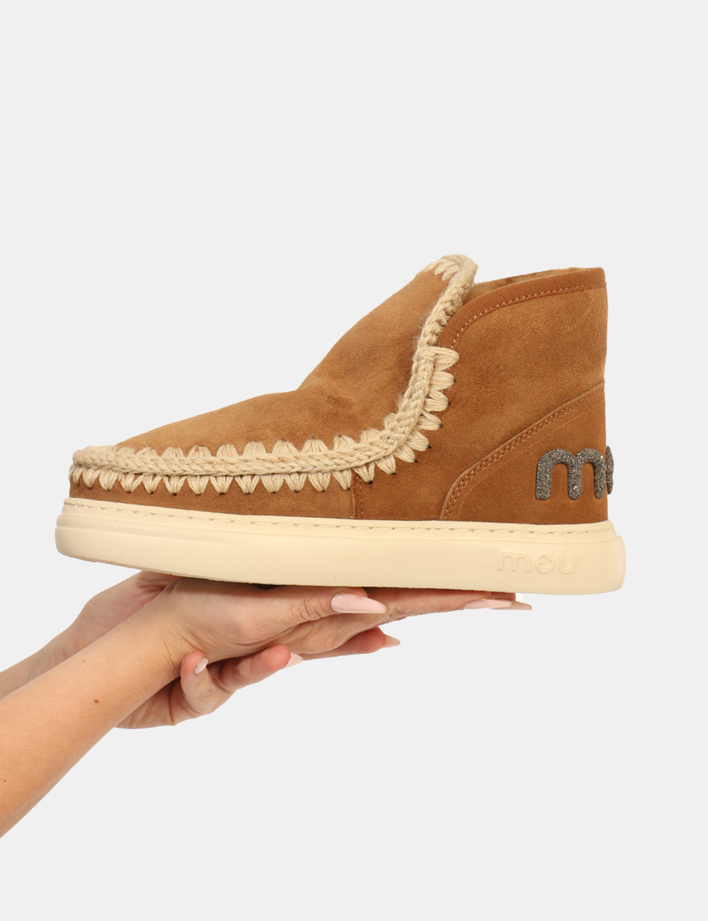 Stivaletti in misto lana, tessuto scamosciato marrone chiaro con dettagli in corda ed interno caldo in fake fur abbinato. Presente logo brand glitterato in rilievo. L’indossatura è morbida e avvolgente, super comoda anche grazie alla suola rialzata. Gli stivaletti sono adatti per occasioni casual, ideali per l’inverno. Affronta la stagione più fredda con stile e morbidezza.
