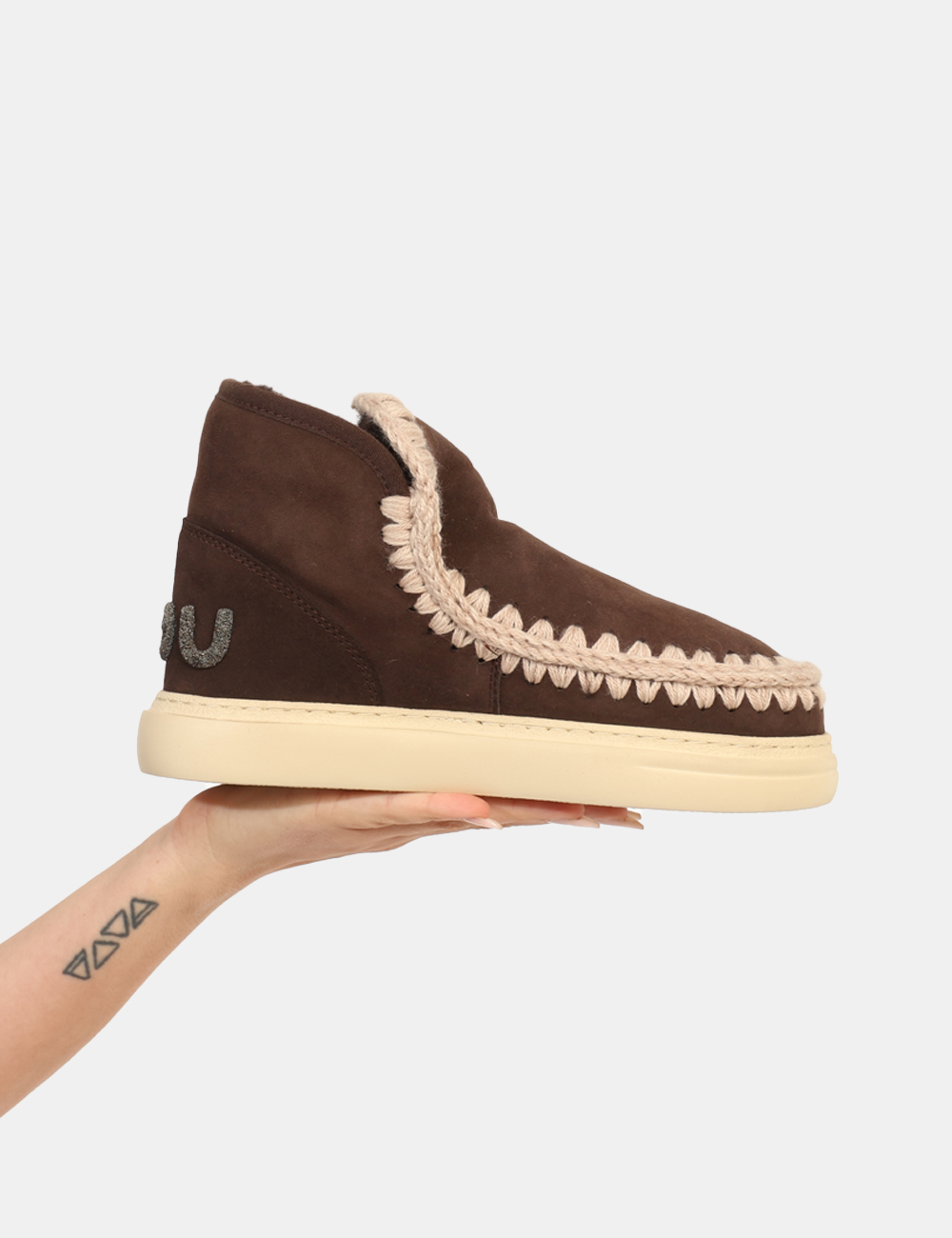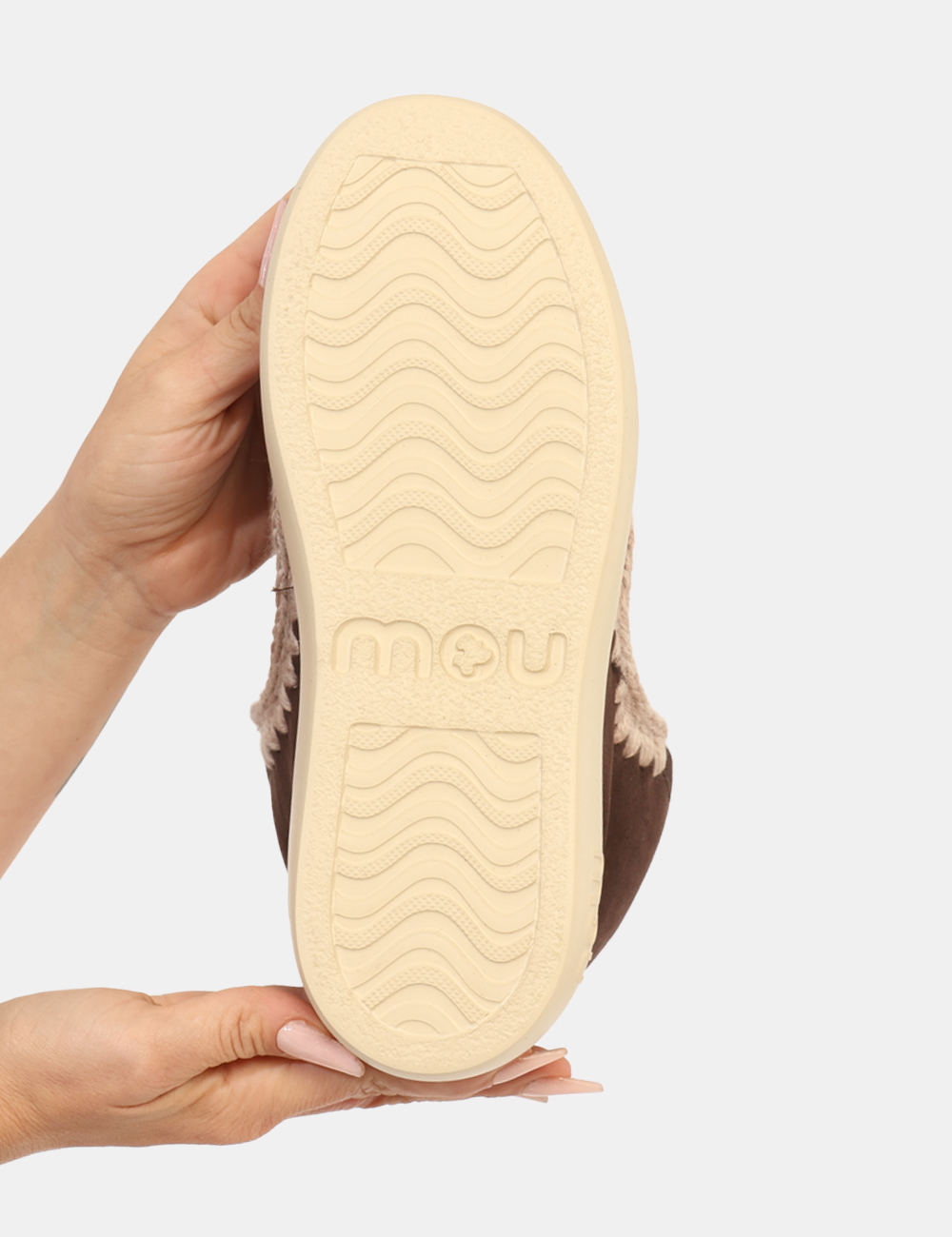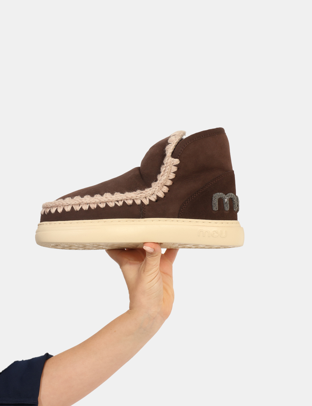 Stivaletti in misto lana, tessuto scamosciato marrone con dettagli in corda ed interno caldo in fake fur abbinato. Presente logo brand glitterato in rilievo. L’indossatura è morbida e avvolgente, super comoda anche grazie alla suola rialzata. Gli stivaletti sono adatti per occasioni casual, ideali per l’inverno. Affronta la stagione più fredda con stile e morbidezza.