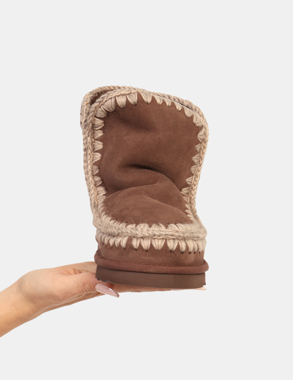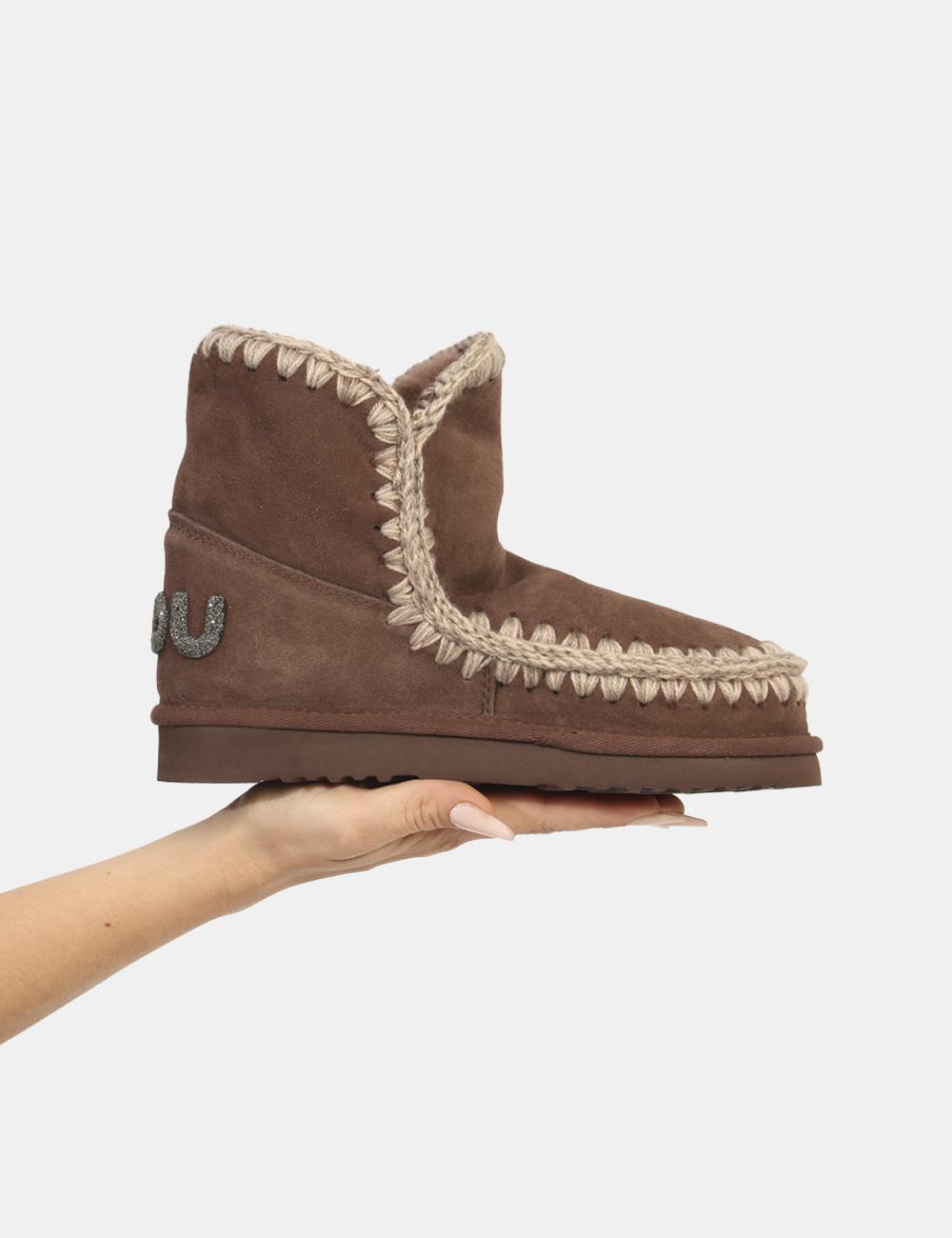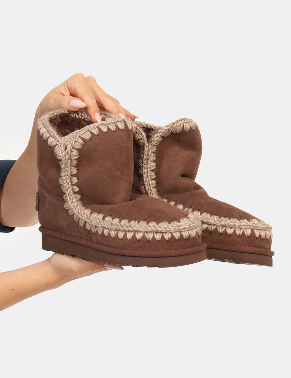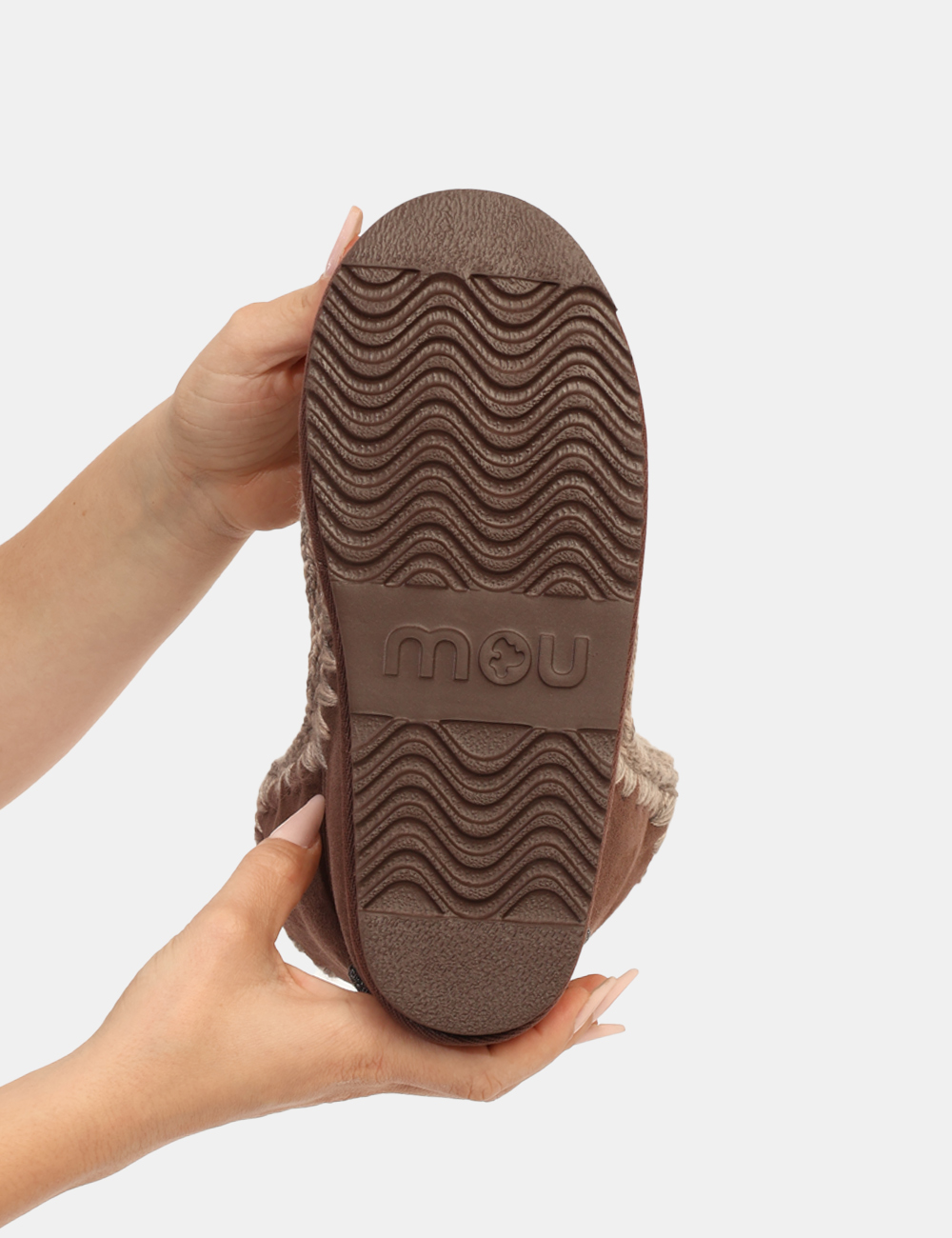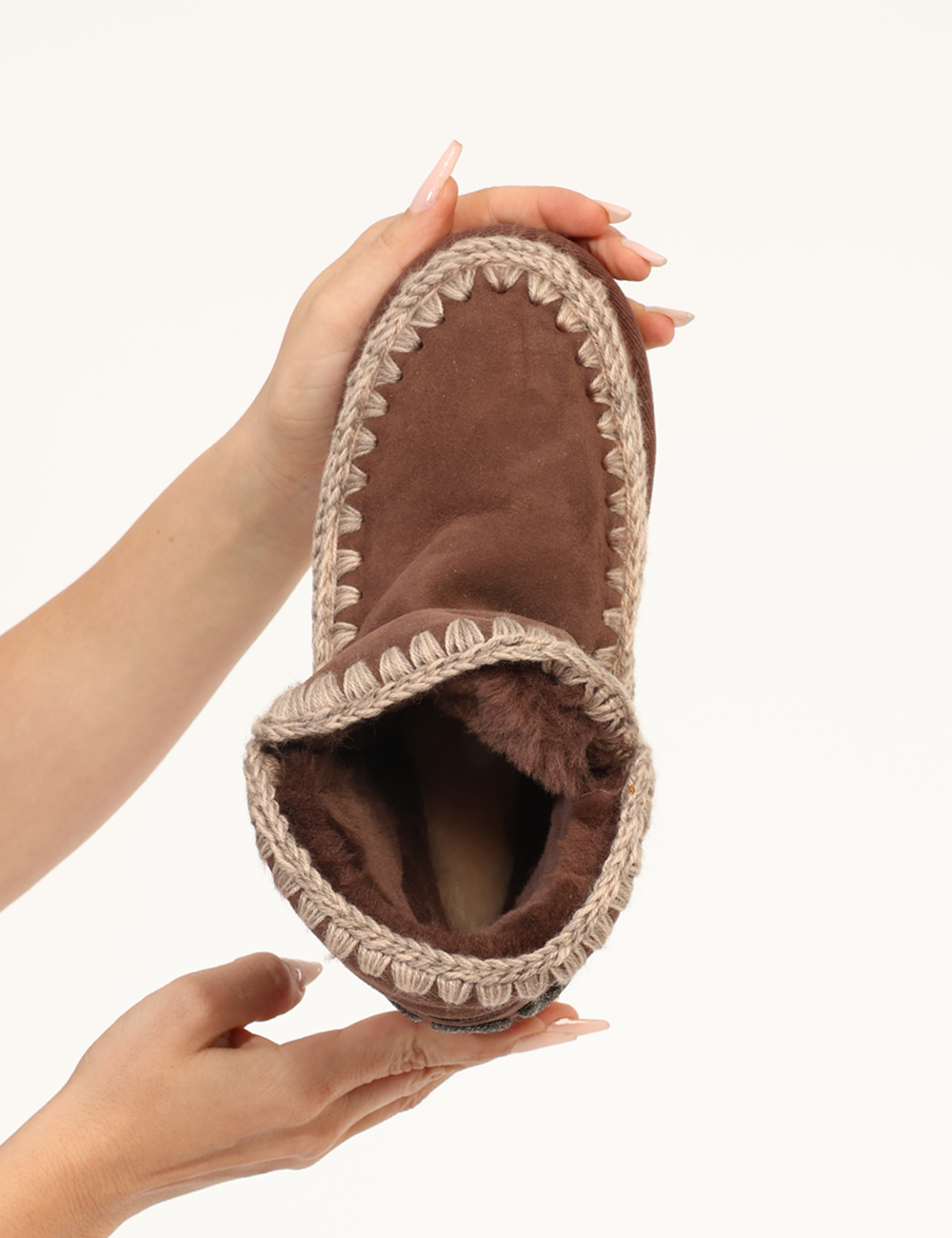 Stivaletti in misto lana, tessuto scamosciato marrone con dettagli in corda ed interno caldo in fake fur abbinato. Presente logo brand glitterato in rilievo. L’indossatura è morbida e avvolgente, super comoda anche grazie a suola Eva che garantisce flessibilità. Gli stivaletti sono adatti per occasioni casual, ideali per l’inverno. Affronta la stagione più fredda con stile e morbidezza.
