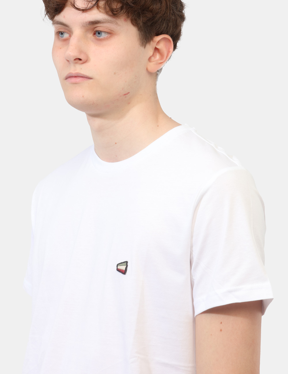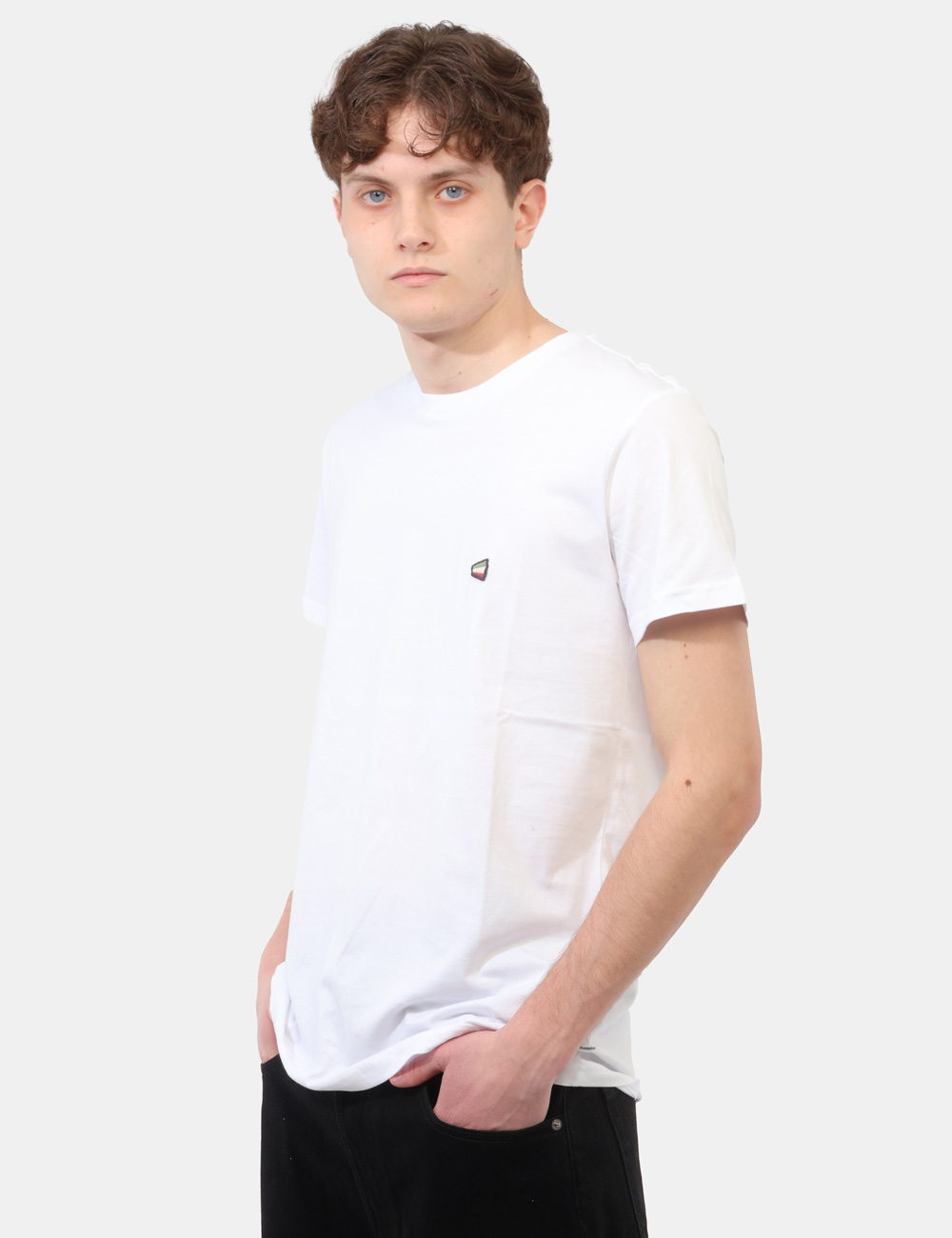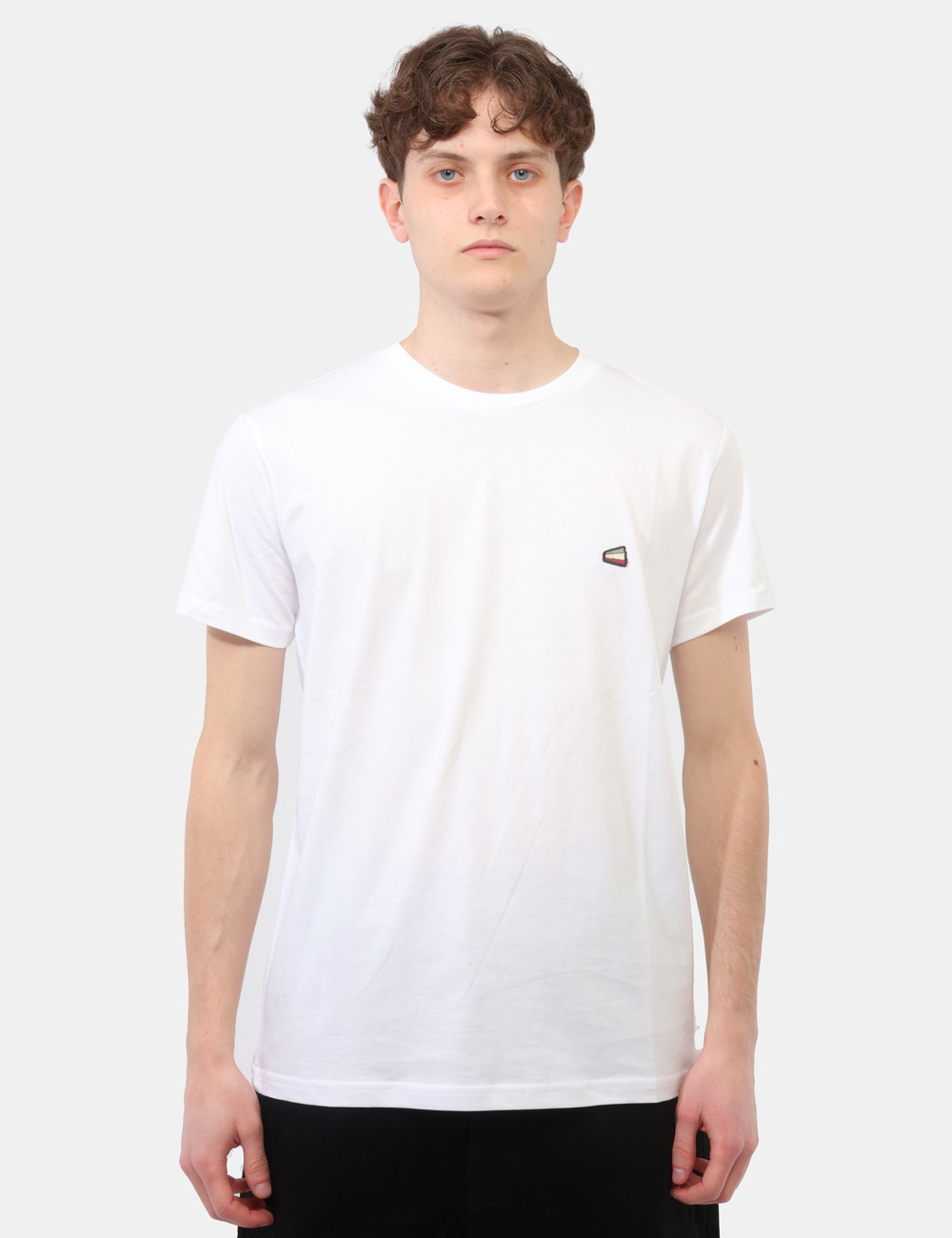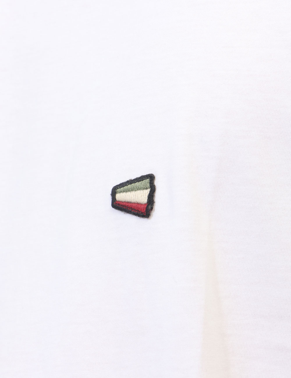 Questa t-shirt con piccola bandiera ricamata si distingue per il suo dettaglio discreto ma riconoscibile, capace di aggiungere personalità anche agli outfit più semplici. Il colore bianco la rende estremamente versatile, facile da abbinare e perfetta per creare look freschi e contemporanei. La vestibilità è regolare: il modello è alto 187 cm e indossa la taglia L, confermando un fit comodo ed equilibrato.