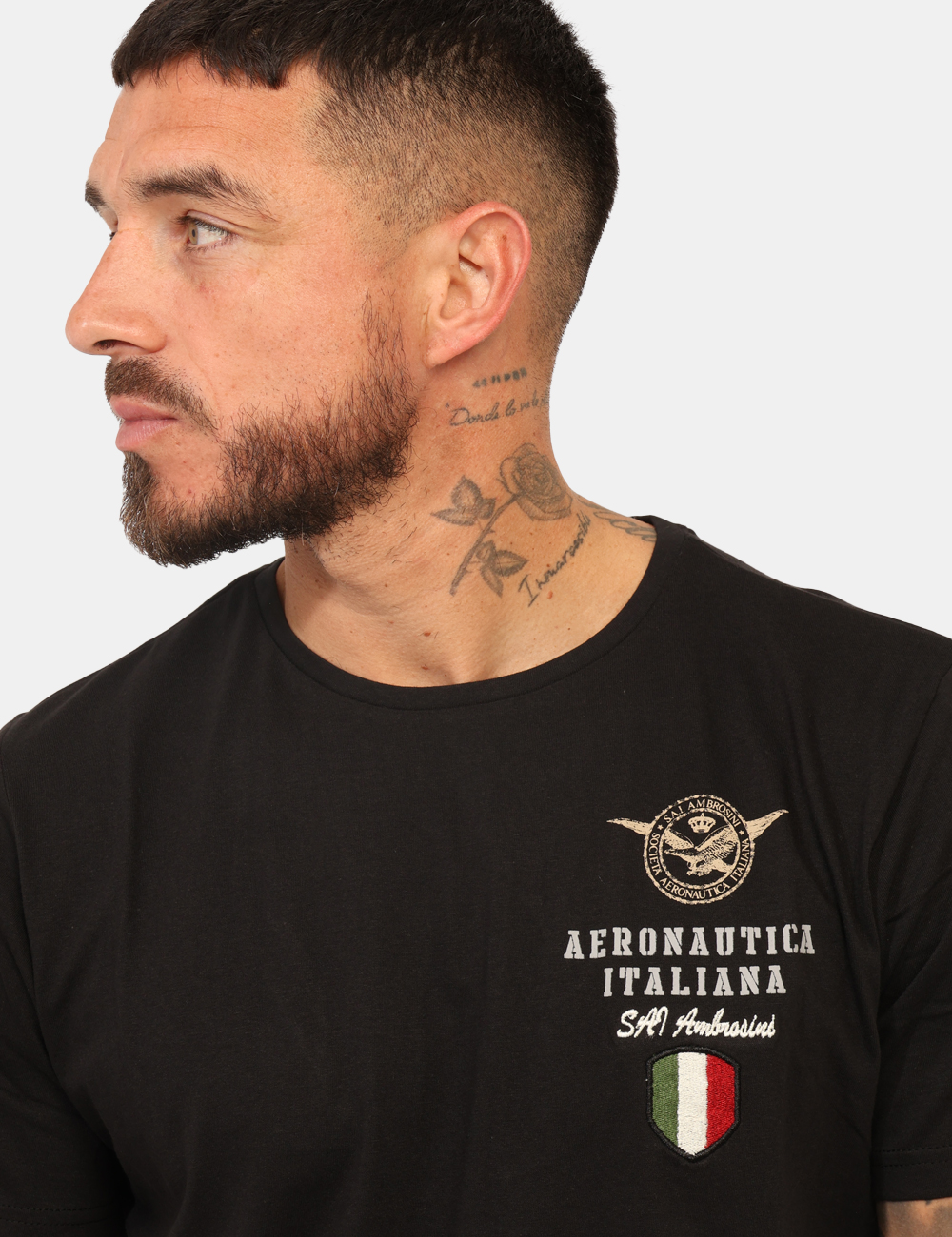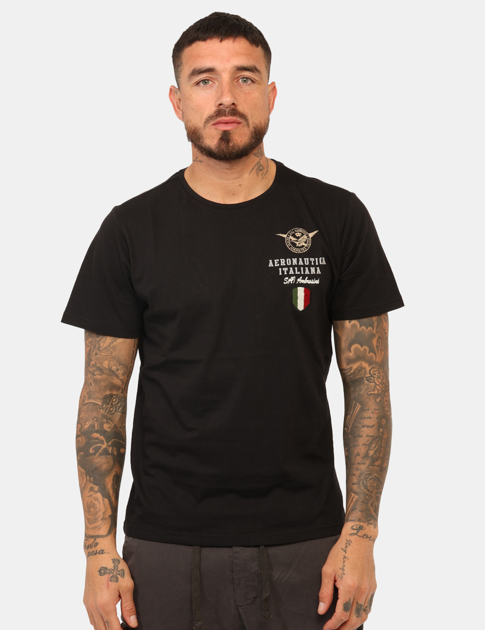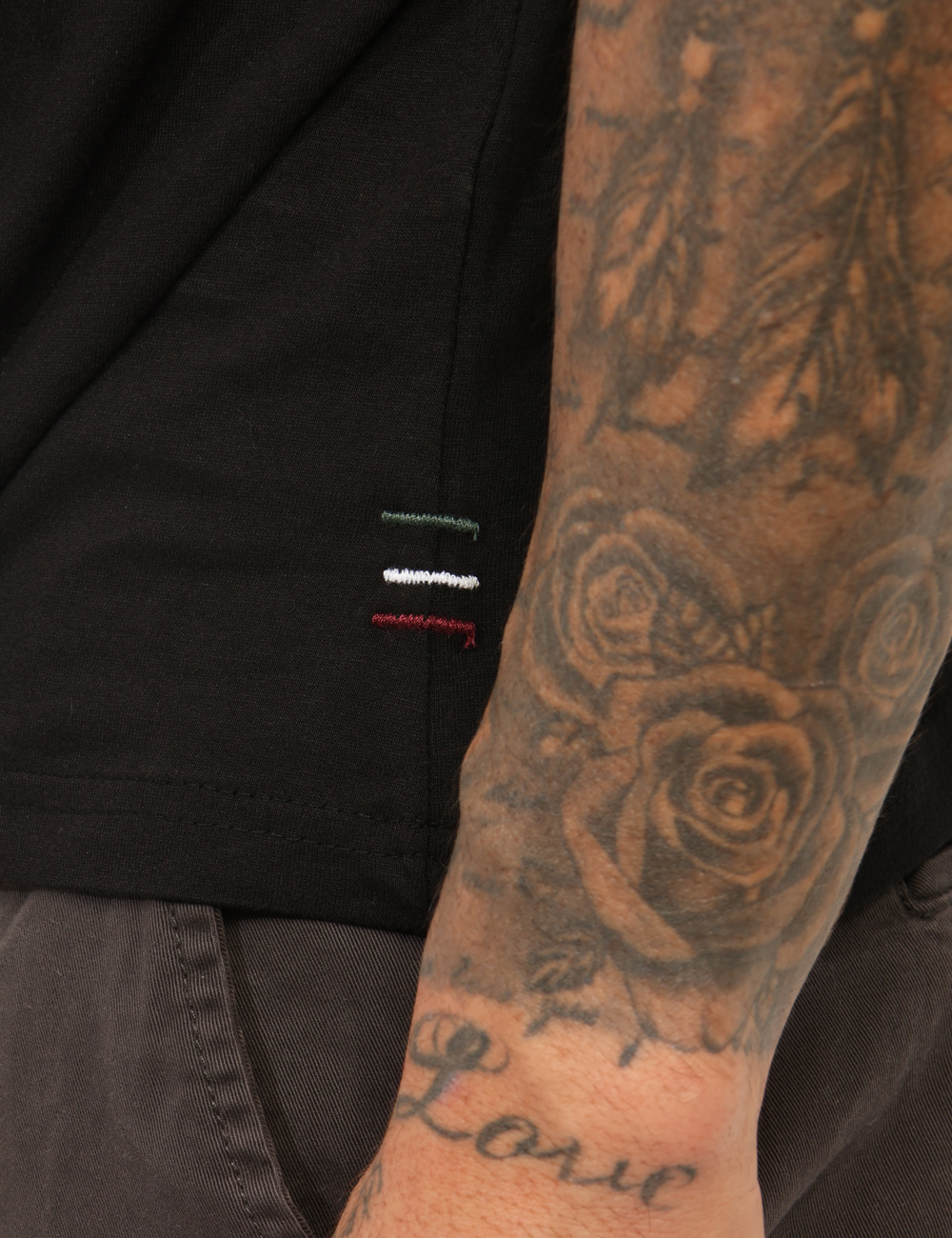 T-shirt classica su base nera con stampa logo brand in tinta coordinata più patch. La vestibilità è morbida e regolare. La t-shirt è adatta per occasioni casual e facilmente combinabile. Troppo comoda per poterne fare a meno.