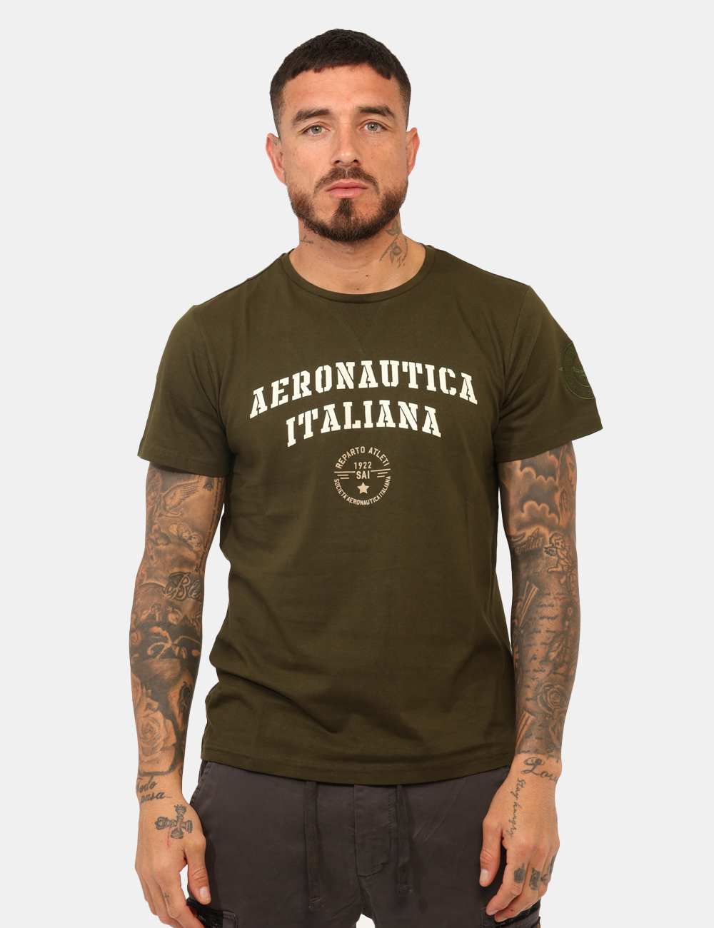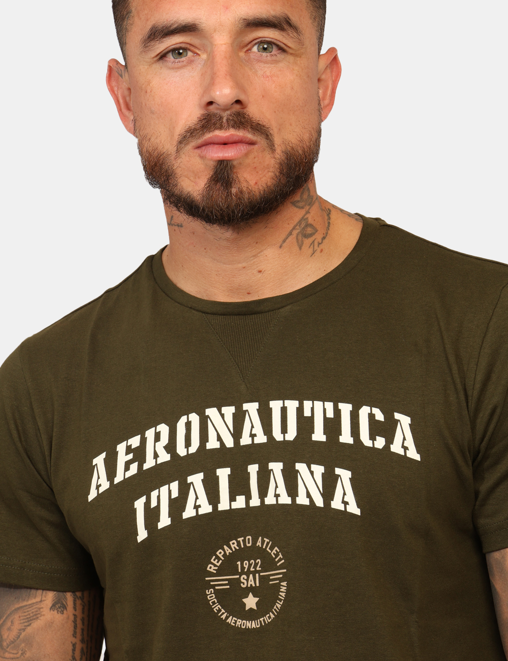 T-shirt classica su base verde con stampa logo brand in tinta coordinata. La vestibilità è morbida e regolare. La t-shirt è adatta per occasioni casual e facilmente combinabile. Praticità e stile in un solo capo.