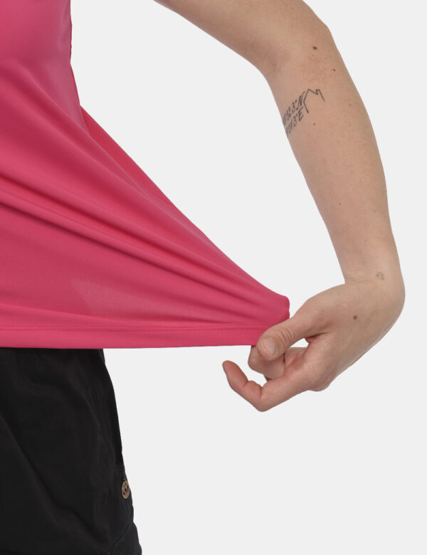 T-shirt classica in total fucsia ed in tessuto lucido. Presente girocollo regolare. La vestibilità è slim. La t-shirt è adatta per occasioni casual e facilmente combinabile. Praticità e stile in un solo capo.