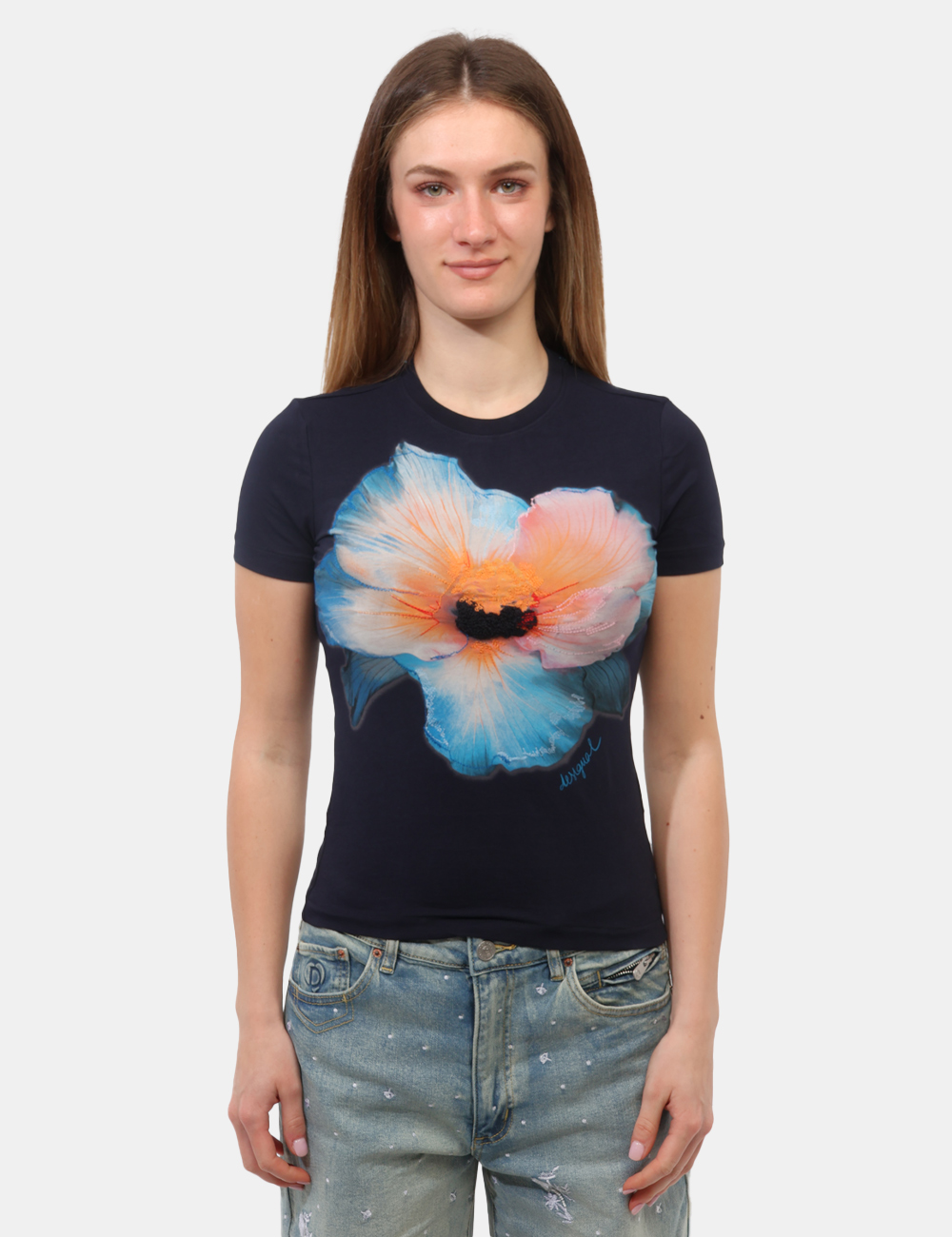 La T-shirt DESIGUAL Blu è il capo perfetto per aggiungere un tocco fresco e femminile ai tuoi look quotidiani. Questa T-shirt da donna adatta alla primavera estate combina semplicità e dettagli ricercati, diventando una scelta ideale per uno stile casual ma curato.